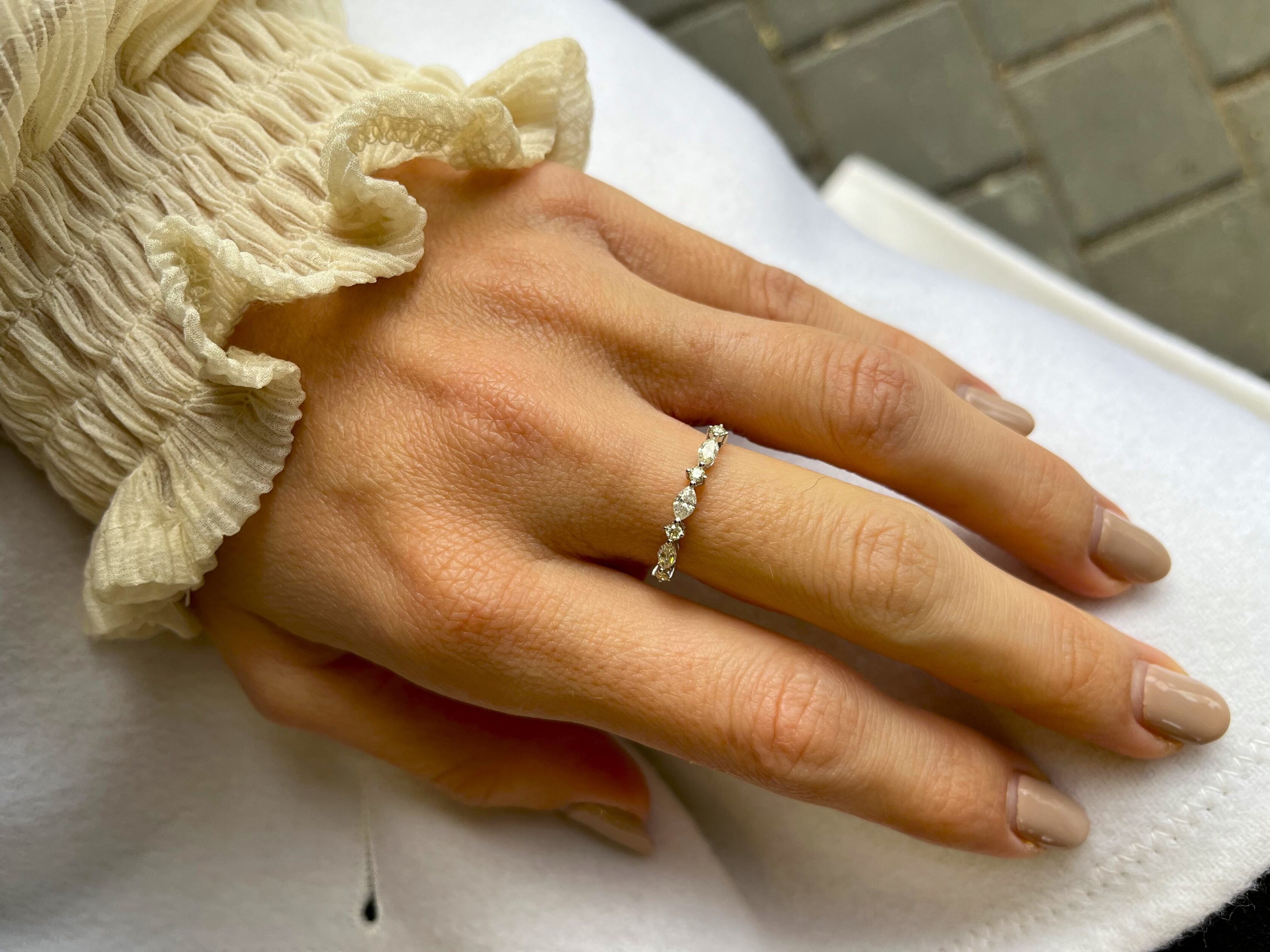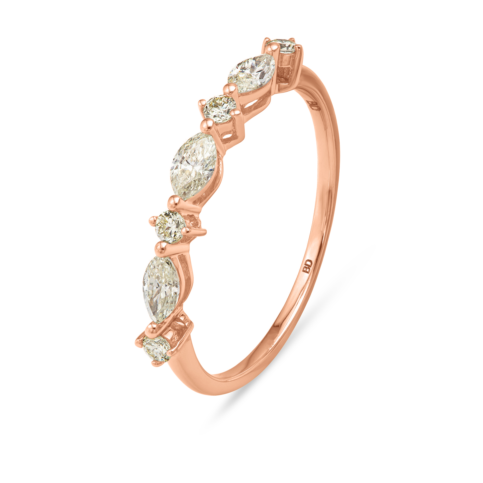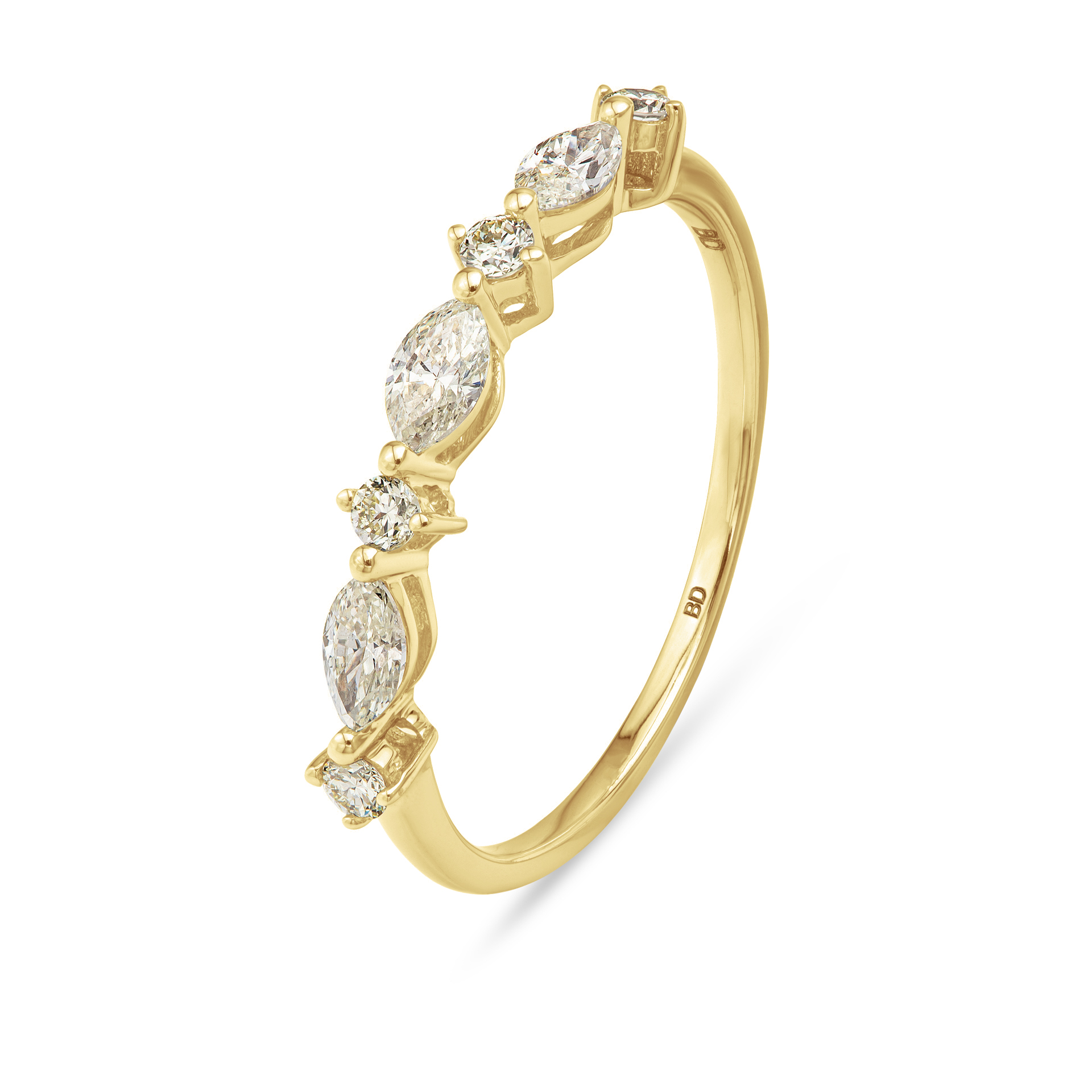 טבעת שורה יהלומי מרקיזה ויהלומים עגולים