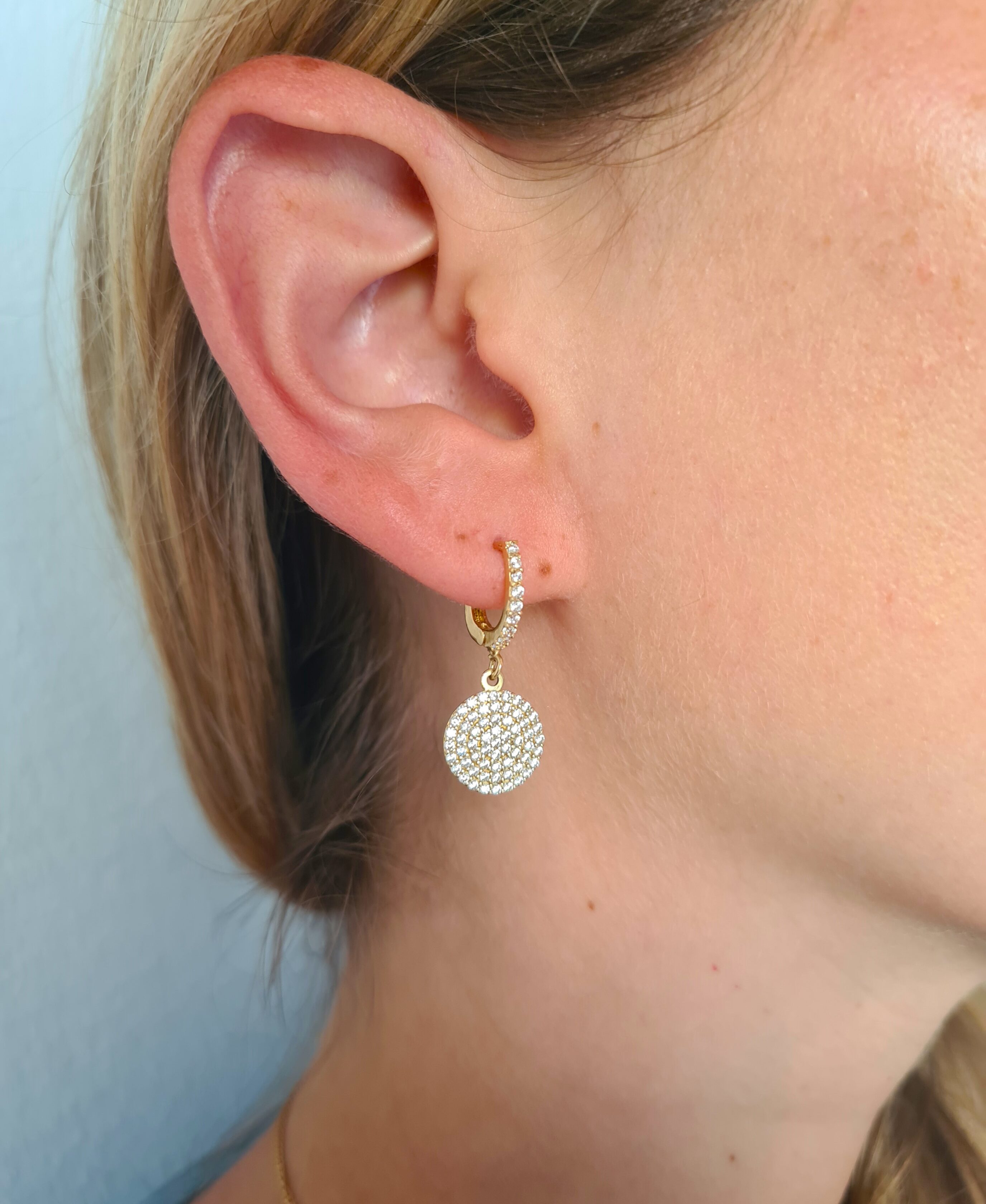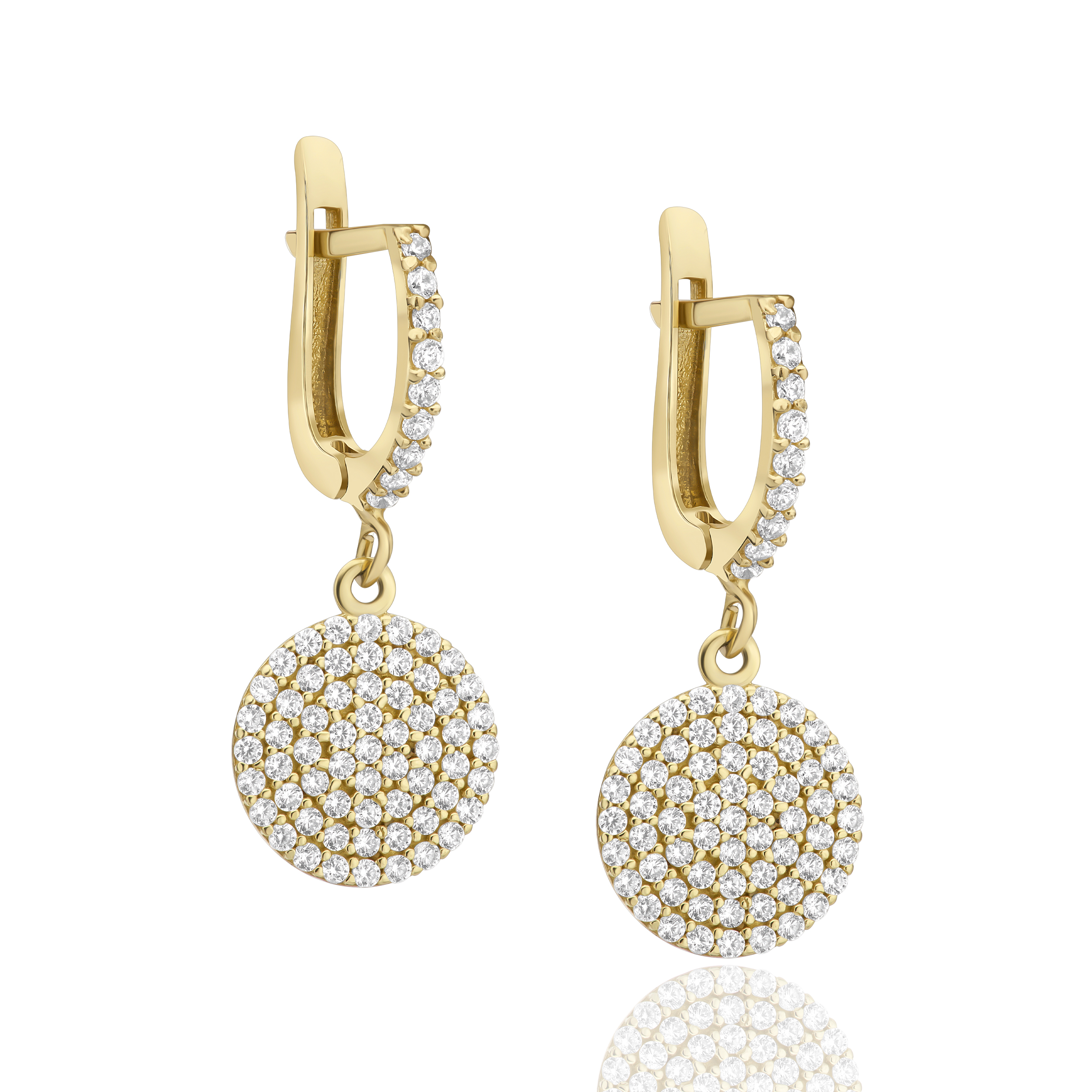 עגילים תלויים מזהב משובצים זרקונים – מעגל הזרקונים