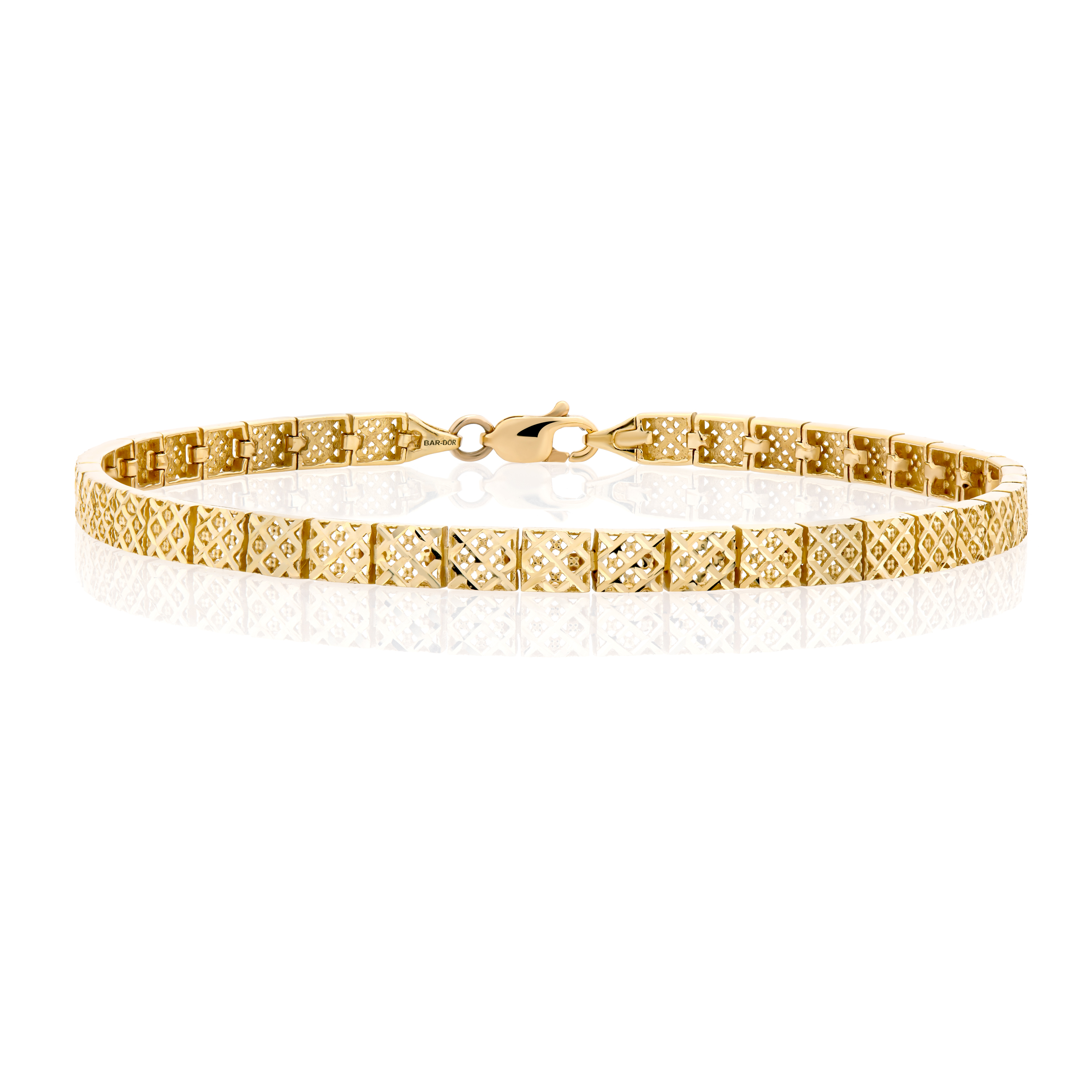צמיד זהב לאישה בגימור חריטות לייזר מזהב 14 קראט אמיתי.