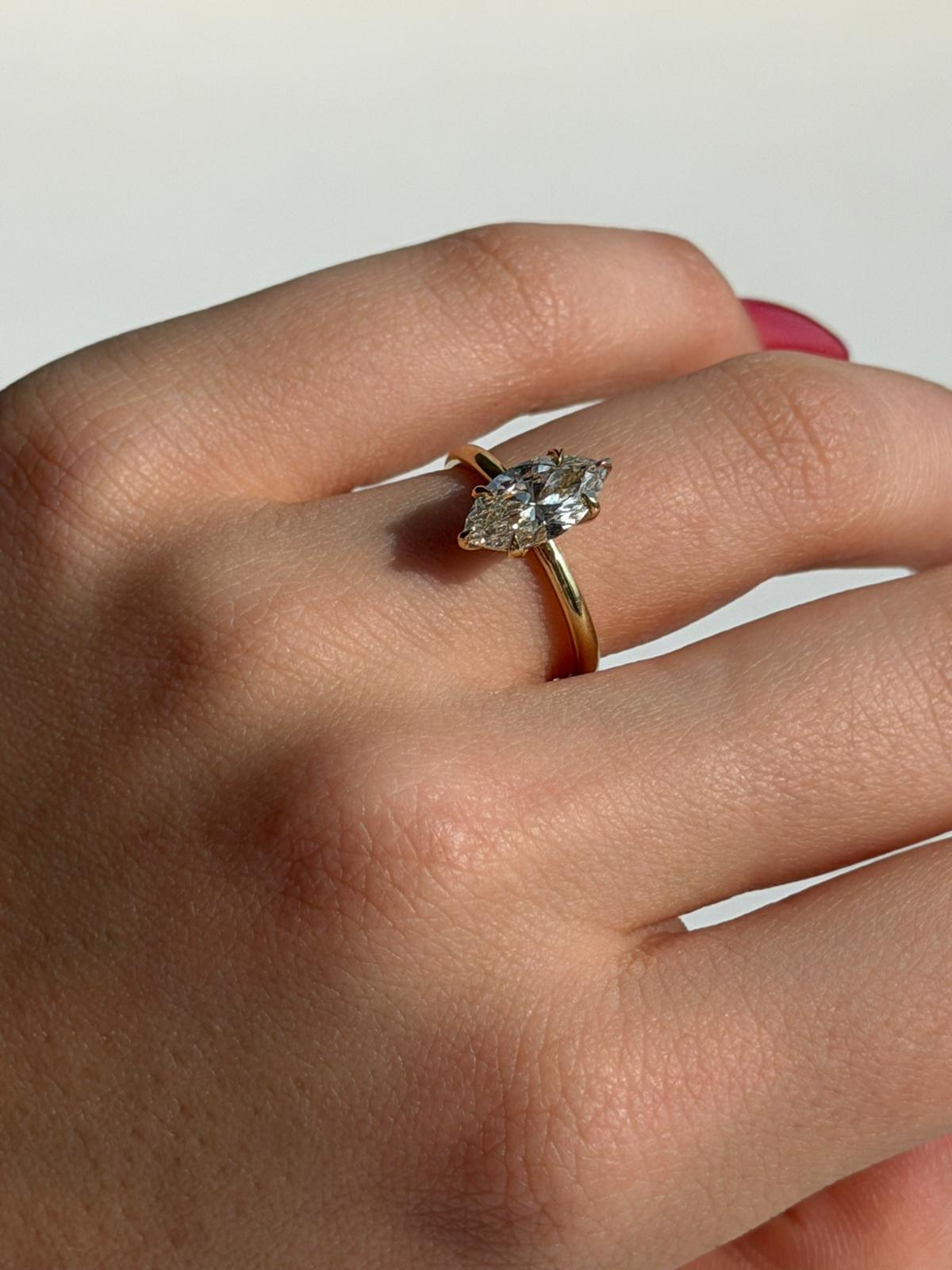 טבעת אירוסין קלאסית משובצת יהלום מעבדה בחיתוך מרקיזה (Maqruise Cut) במשקל 1.50 קראט.