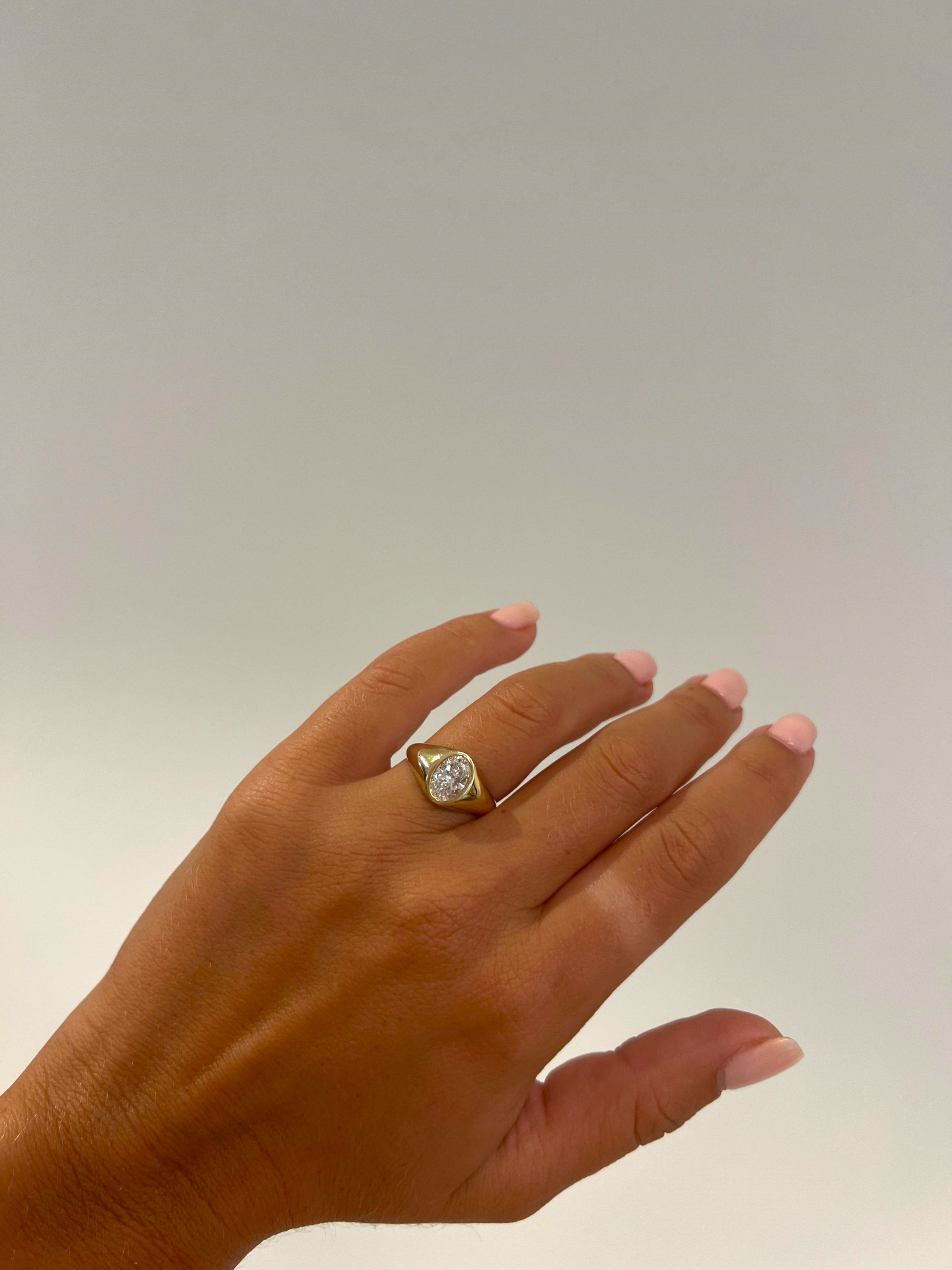 טבעת חותם מדהימה ביופייה משובצת יהלום מעבדה בחיתוך אליפסה (Oval Cut) במשקל 1.01 קראט.