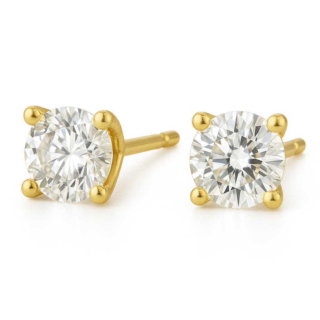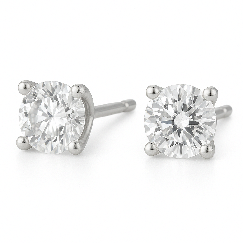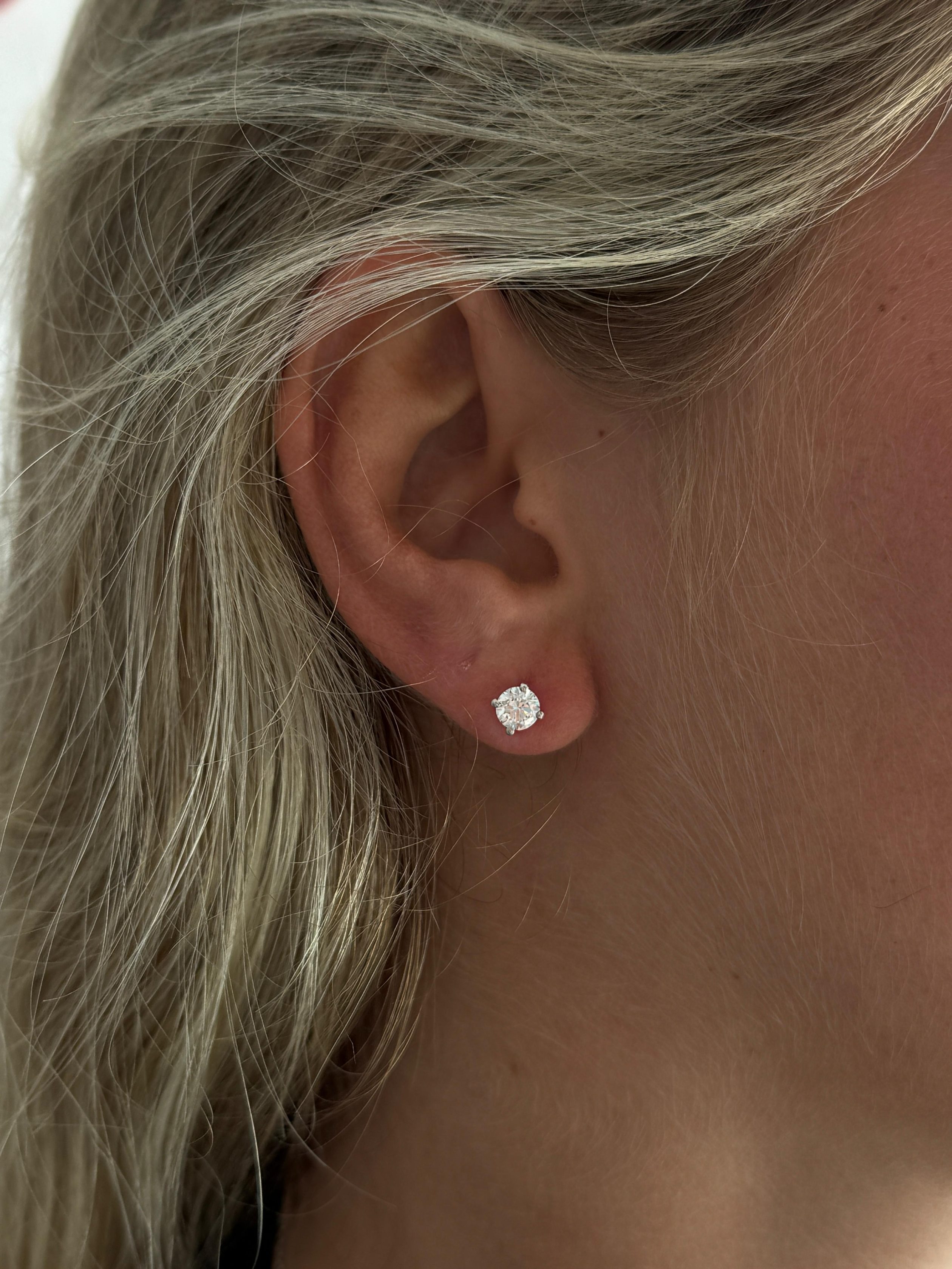 זוג עגילי סוליטר משובצים יהלום מעבדה, במשקל כולל של 1 קראט (0.50 קראט בכל עגיל)