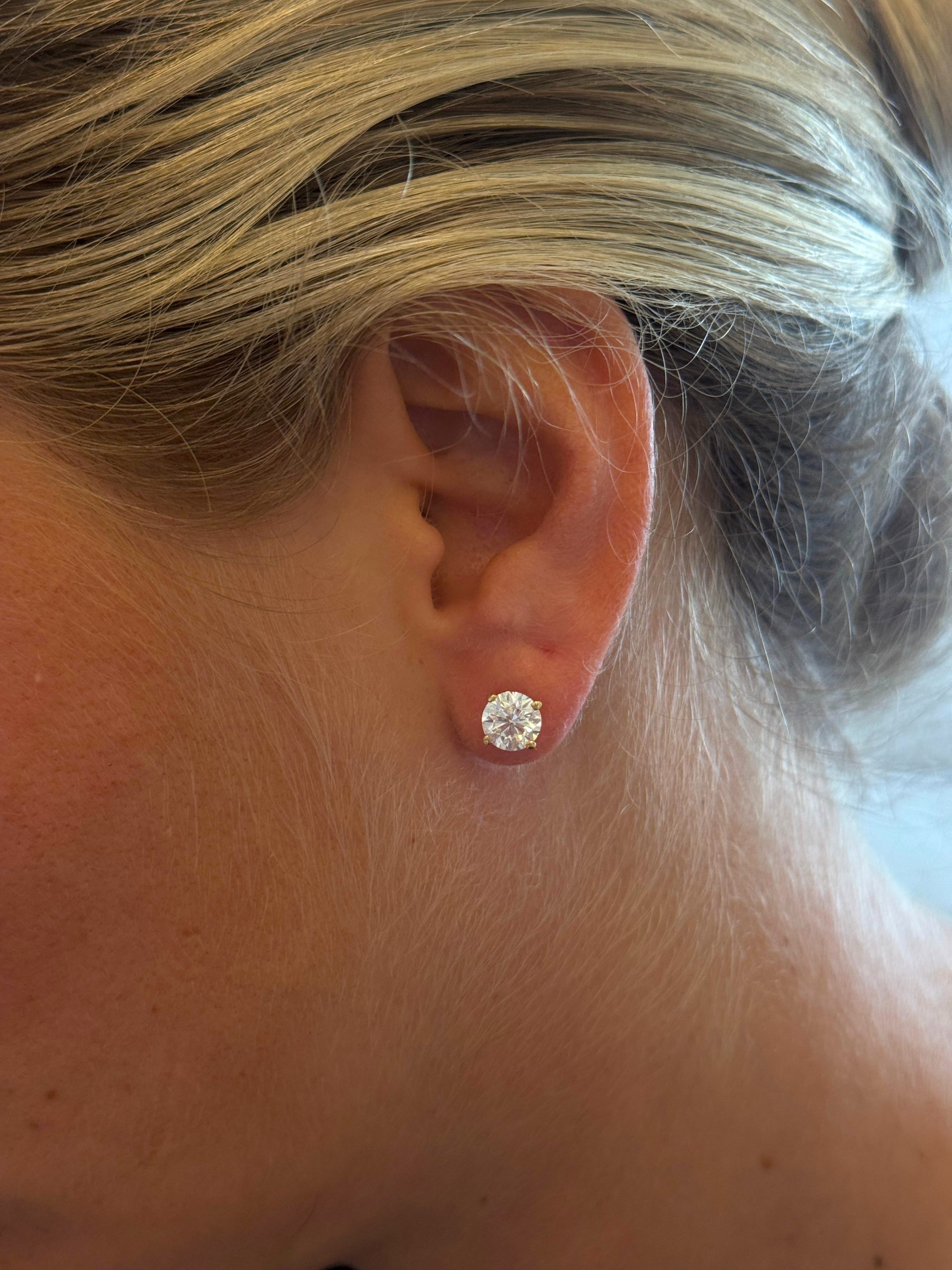 זוג עגילי סוליטר משובצים יהלום מעבדה, במשקל כולל של 3.02 קראט (מעט יותר מ-1.50 קראט בכל עגיל)