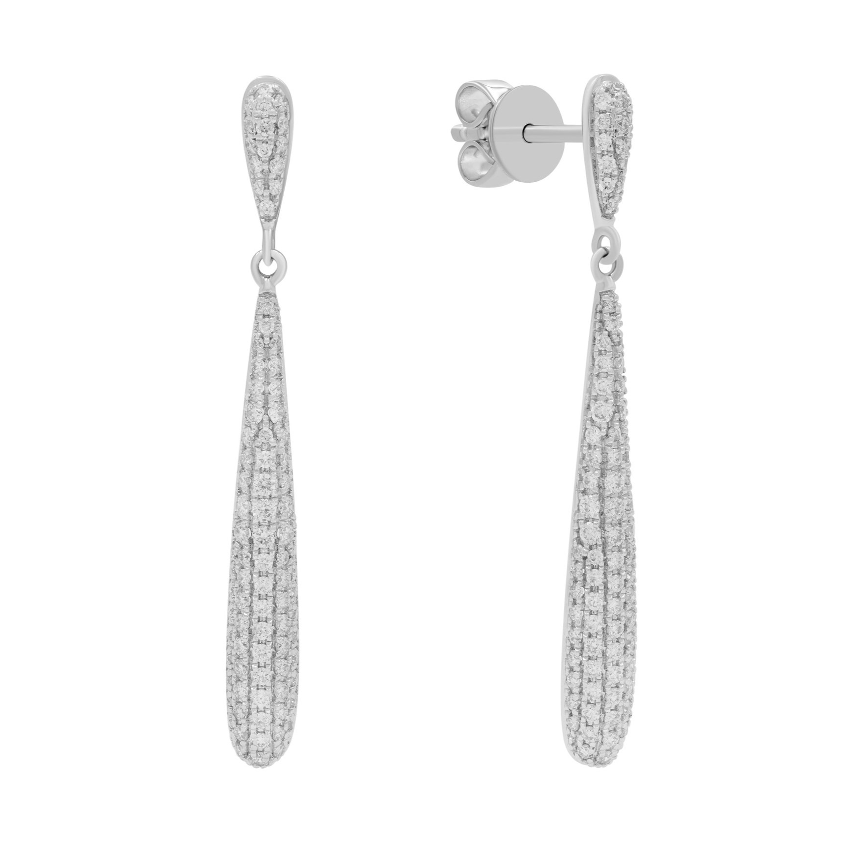 - עגילים תלויים משובצים יהלומים – מזהב לבן 14 קראט