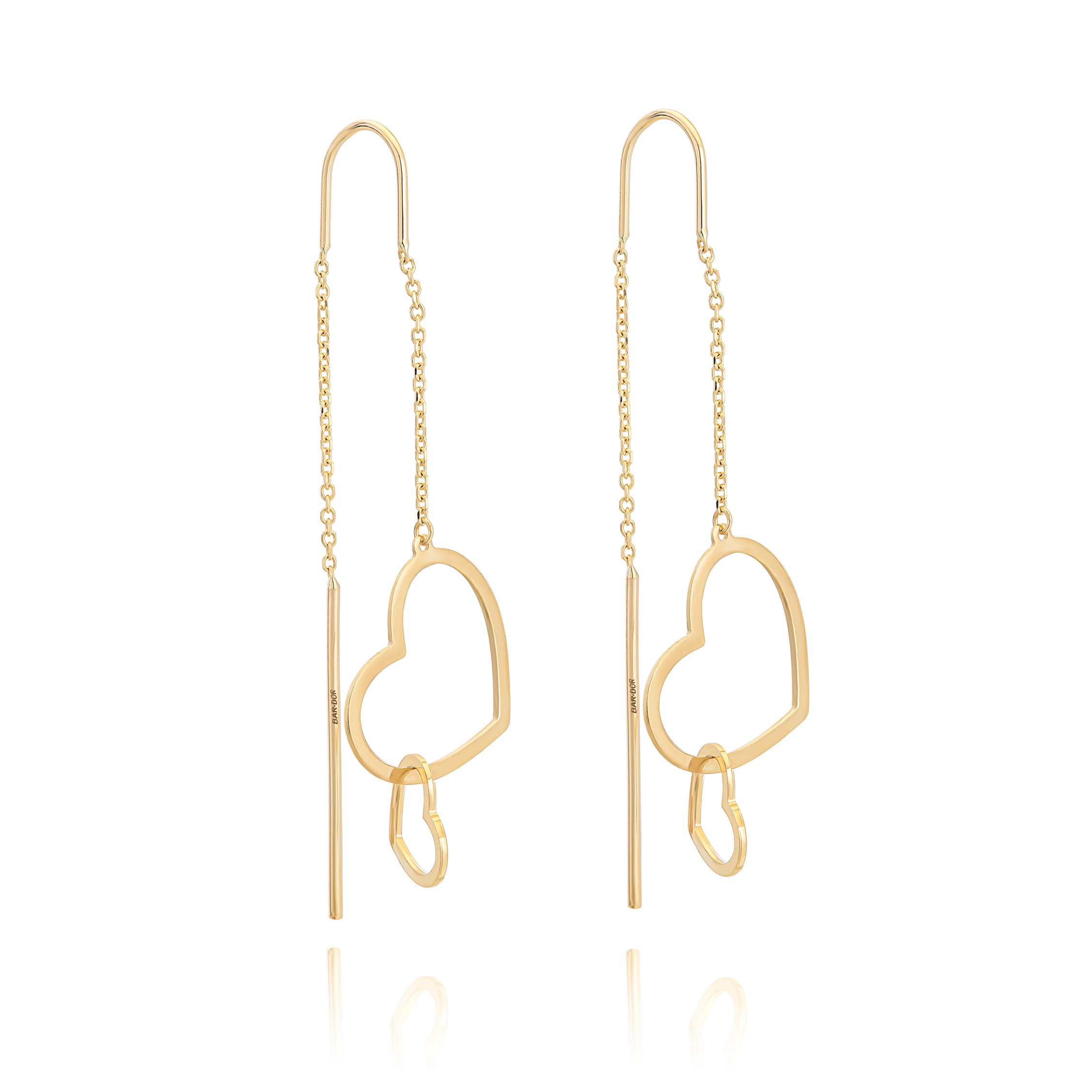- עגילי "שרוך" מזהב 14 קראט אמיתי – דגם "לבבות"
