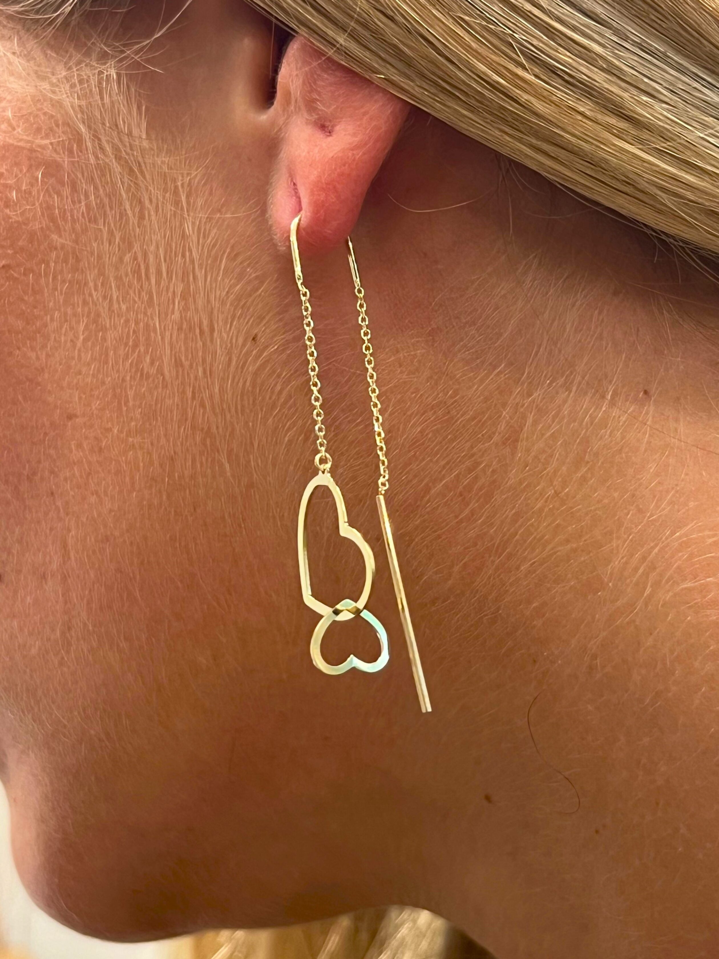עגילי "שרוך" מזהב אמיתי – "לבבות"