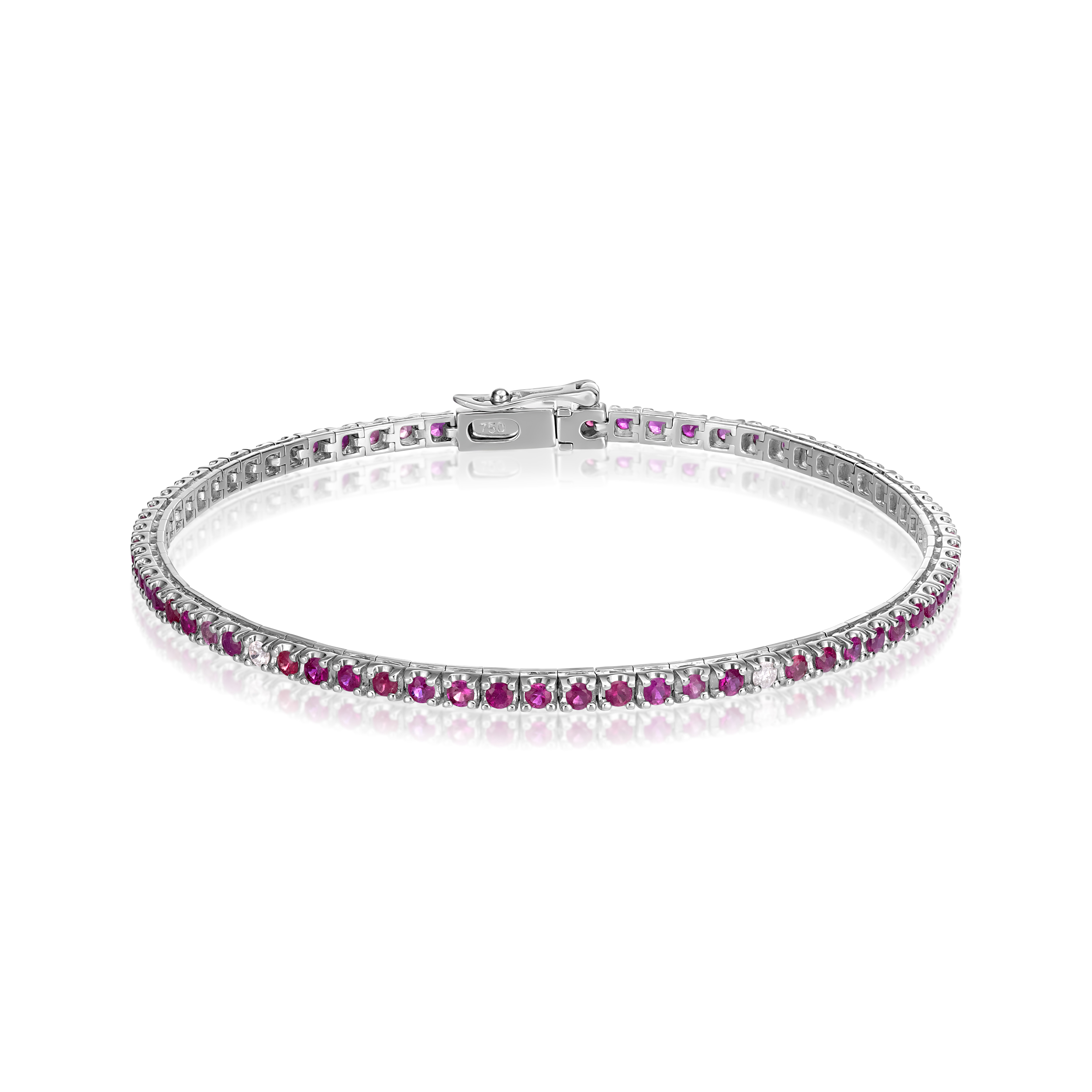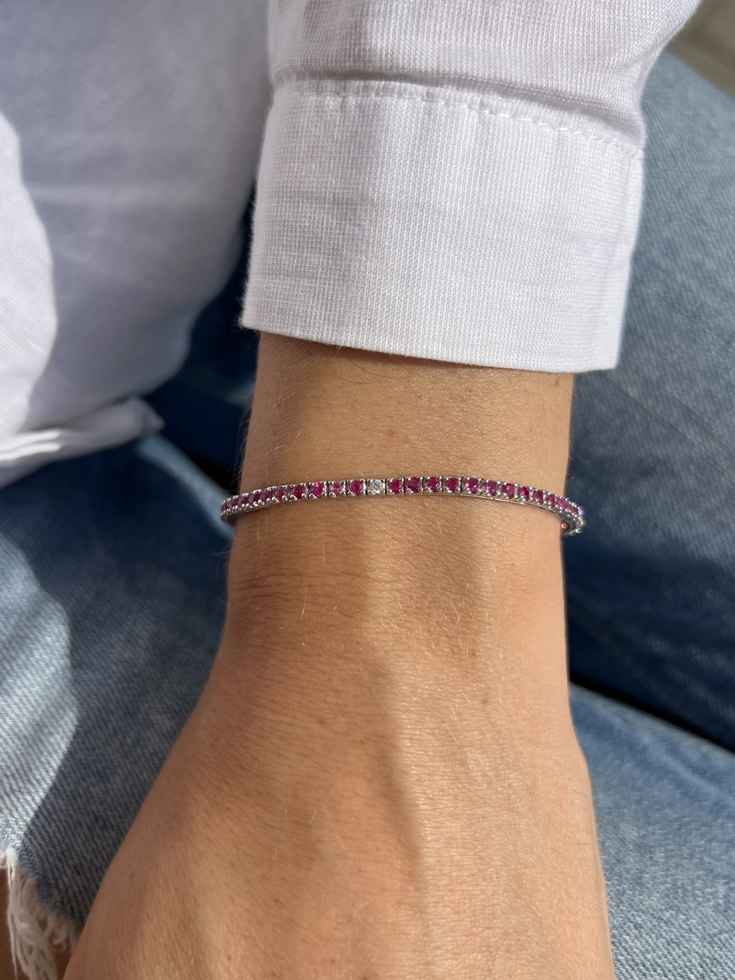 צמיד טניס זהב לבן משובץ יהלומים ואבני רובי