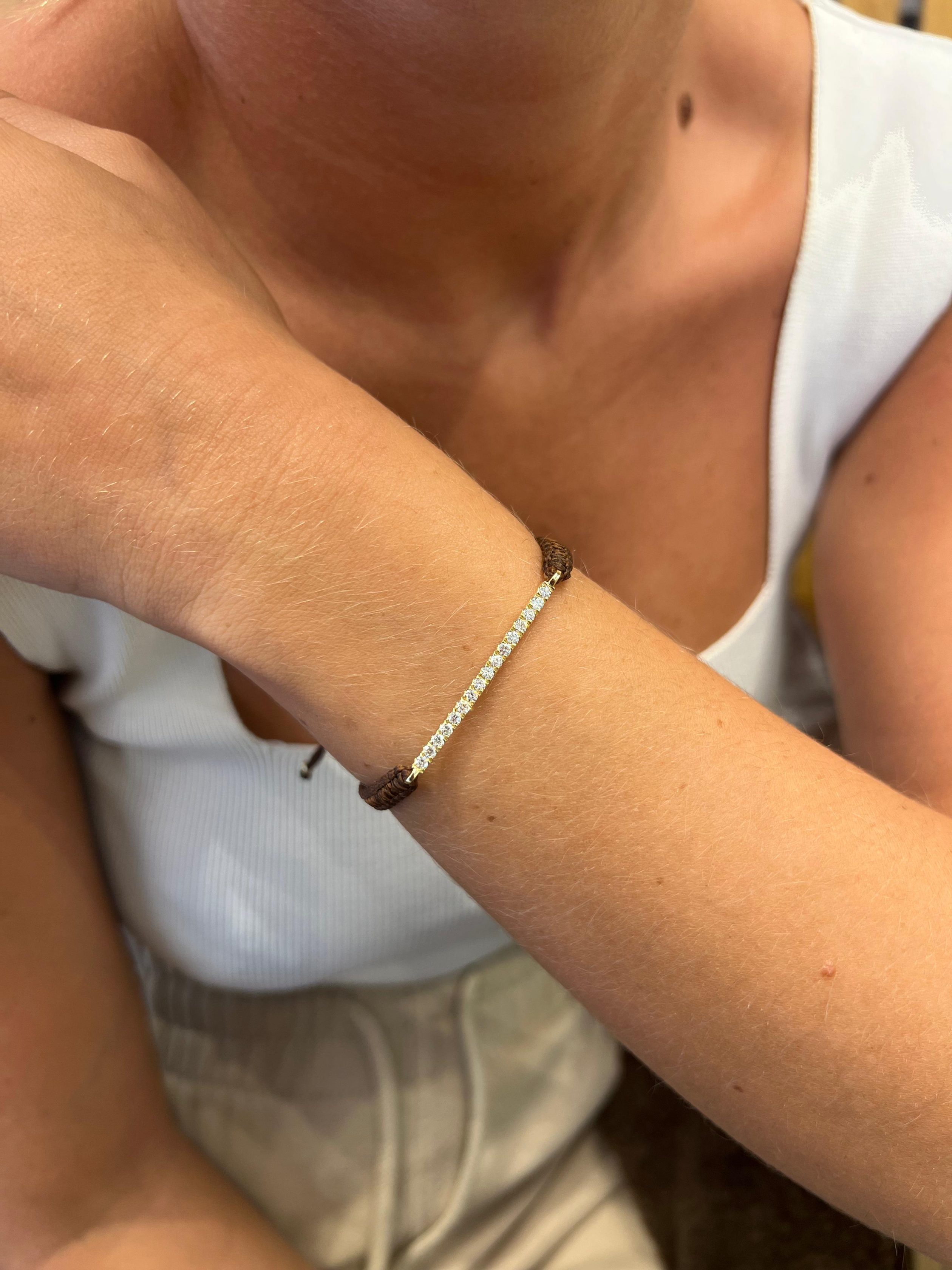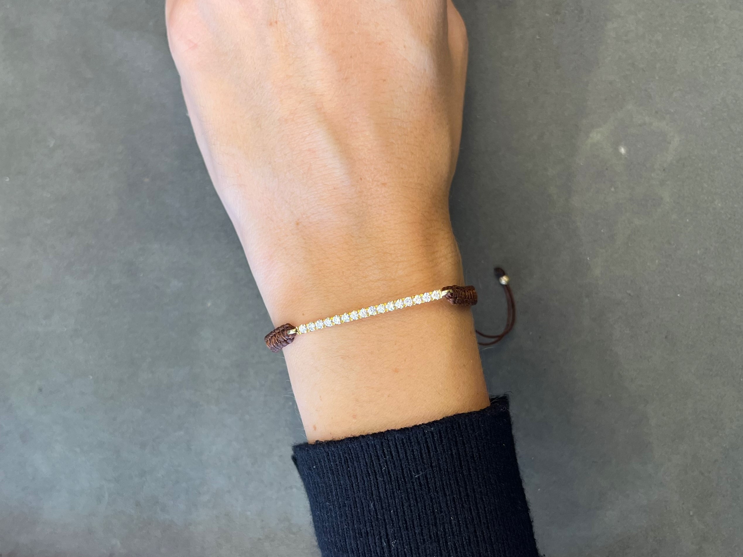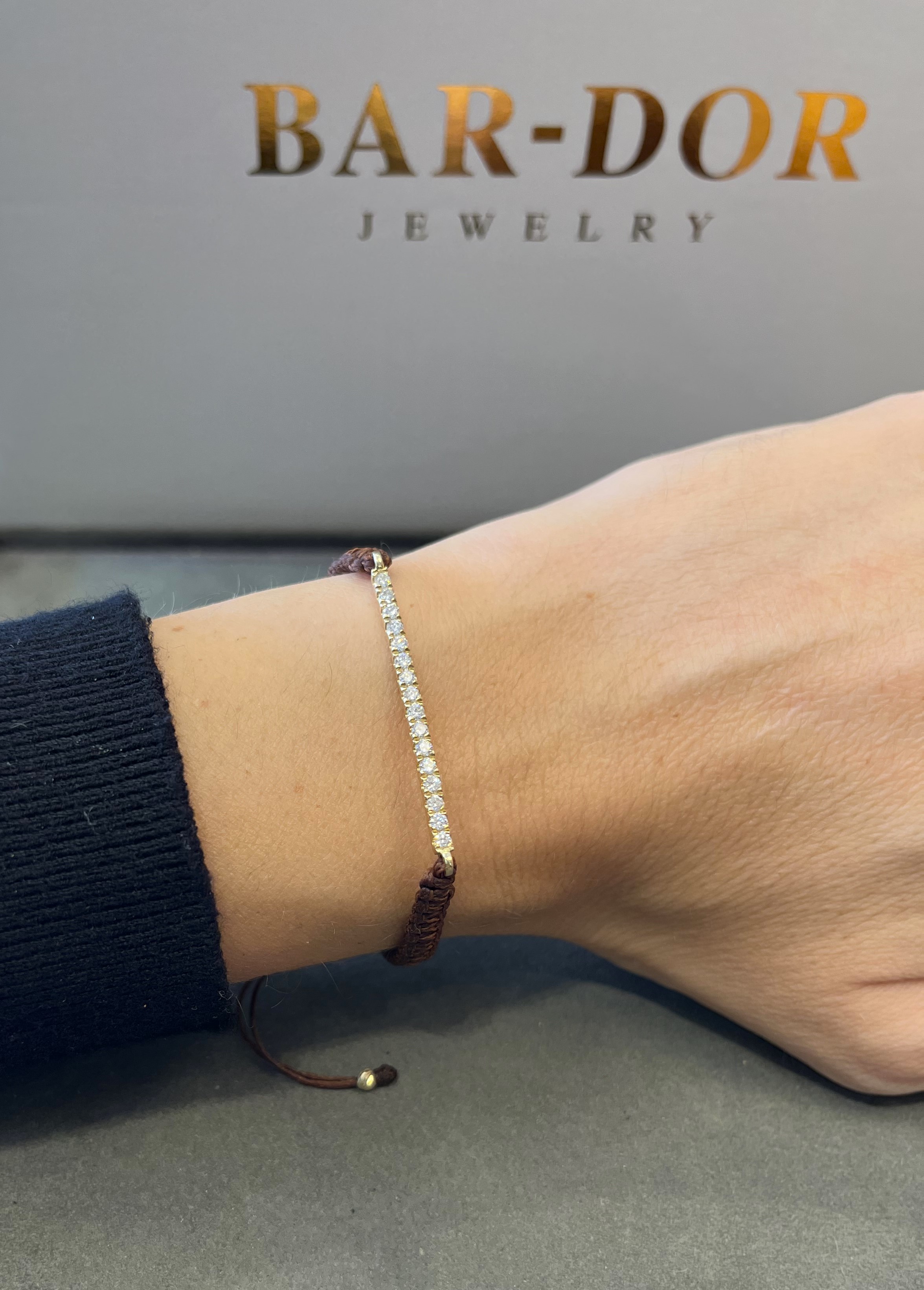 צמיד שורה יהלומי מעבדה עם חוט וכדורי זהב.