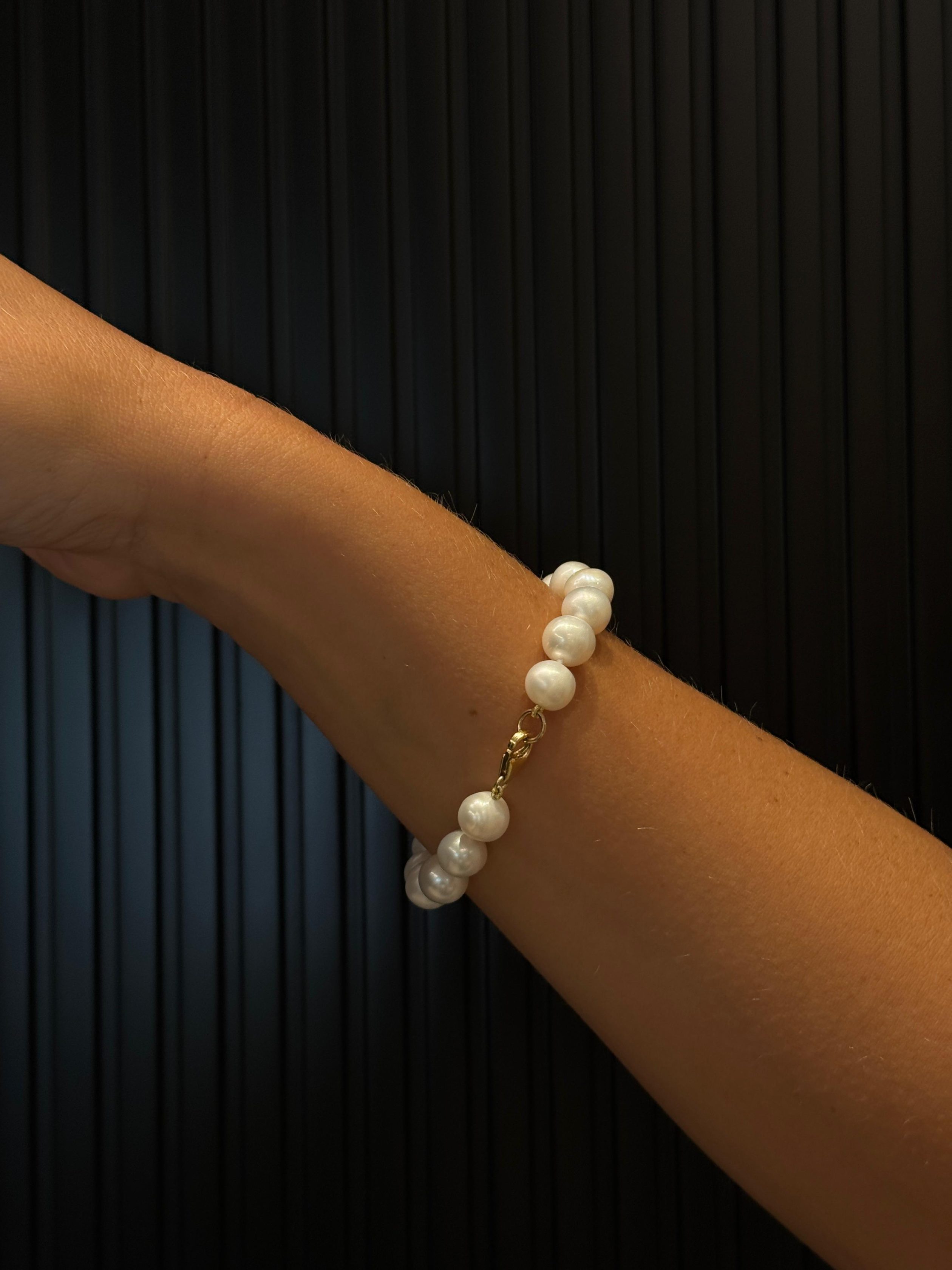 צמיד מפנינים בקוטר 8.5-9.0 מ"מ, וסוגר מזהב 14 קראט מסוג "לובסטר" הנוח.