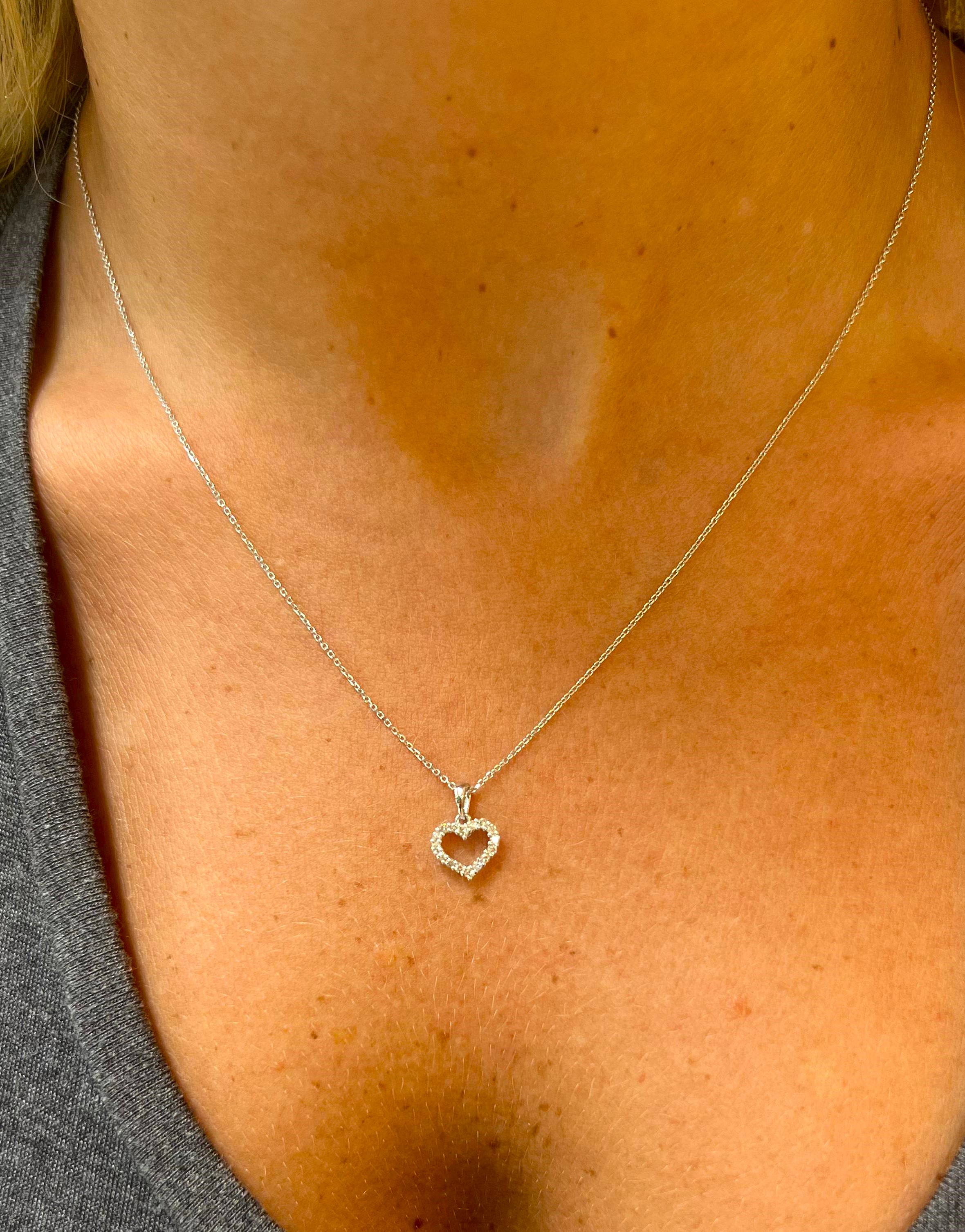 שרשרת לב יהלומים עדינה וקלאסית, משובצת יהלומים טבעיים.