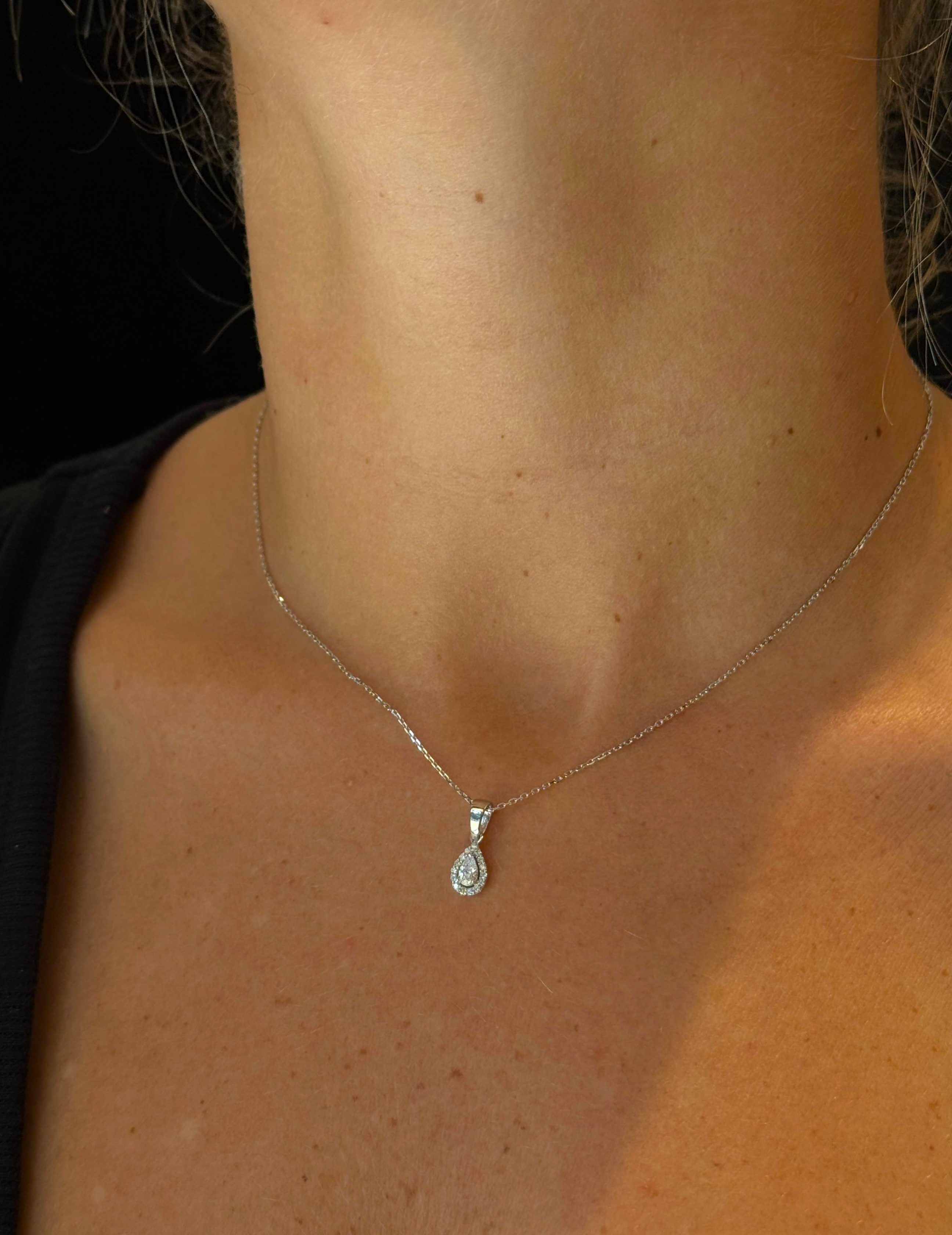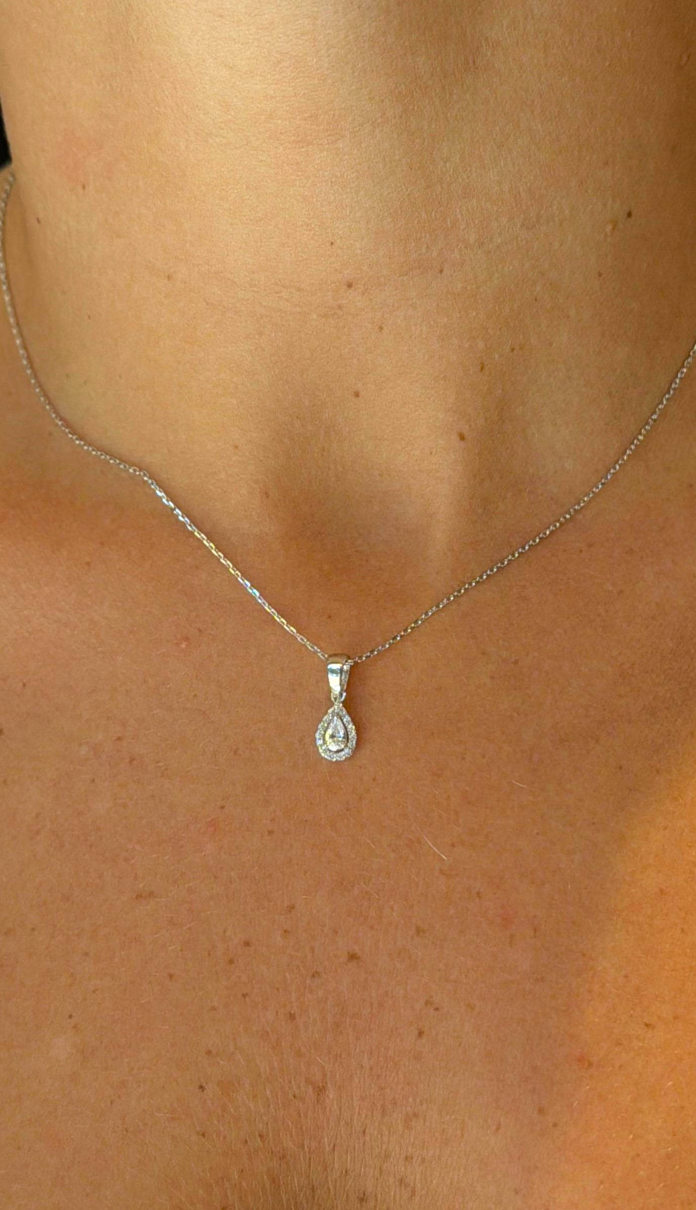 שרשרת זהב ותליון בצורת "טיפה" – משובץ זרקונים.