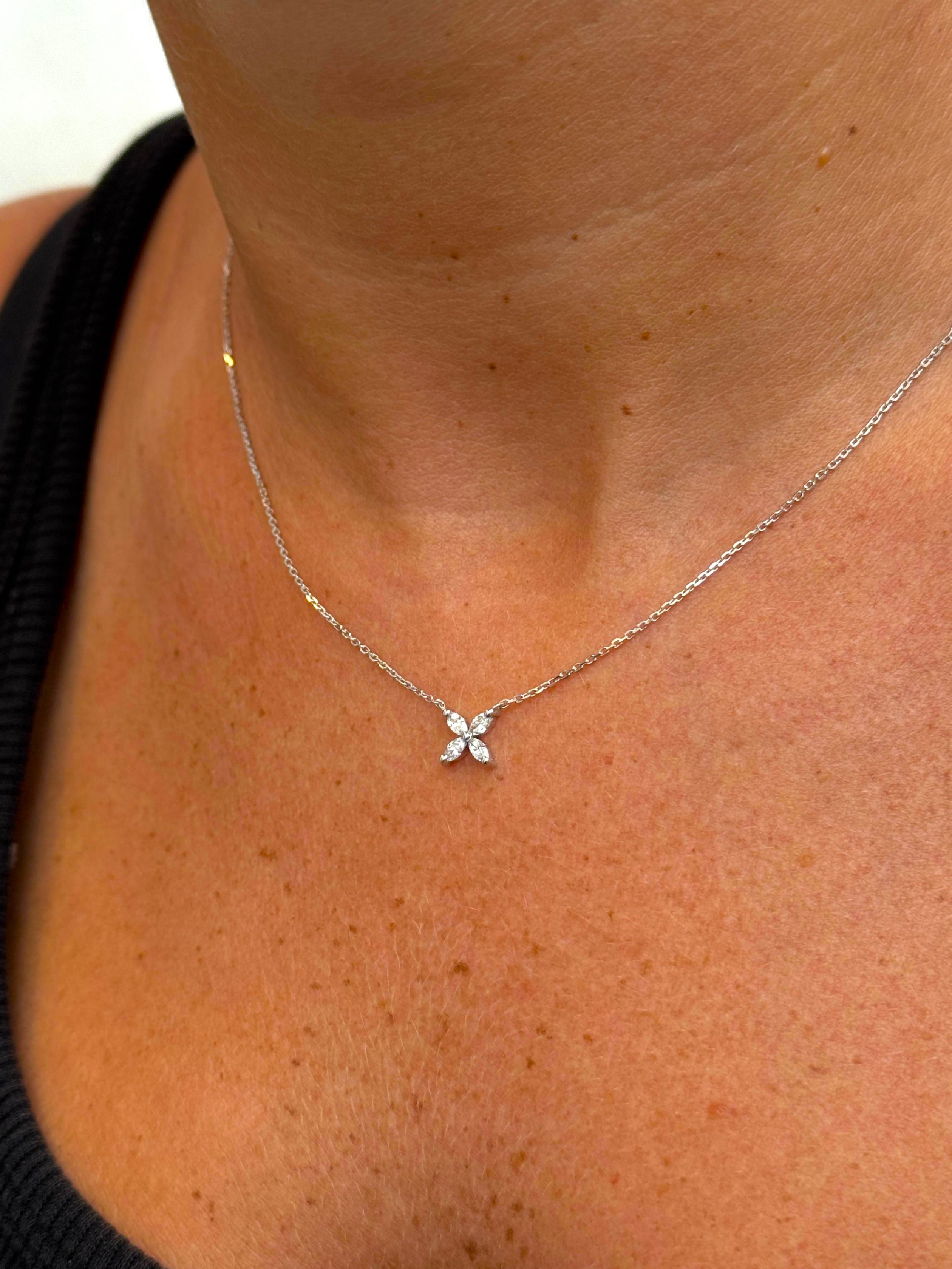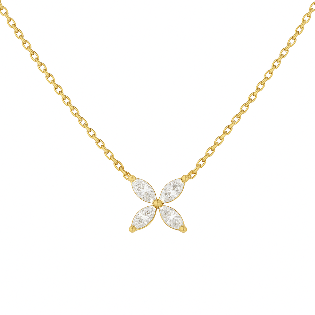 שרשרת מזהב 14 קראט משובצת ארבעה יהלומי מעבדה בחיתוך מרקיזה (Marquise Cut).