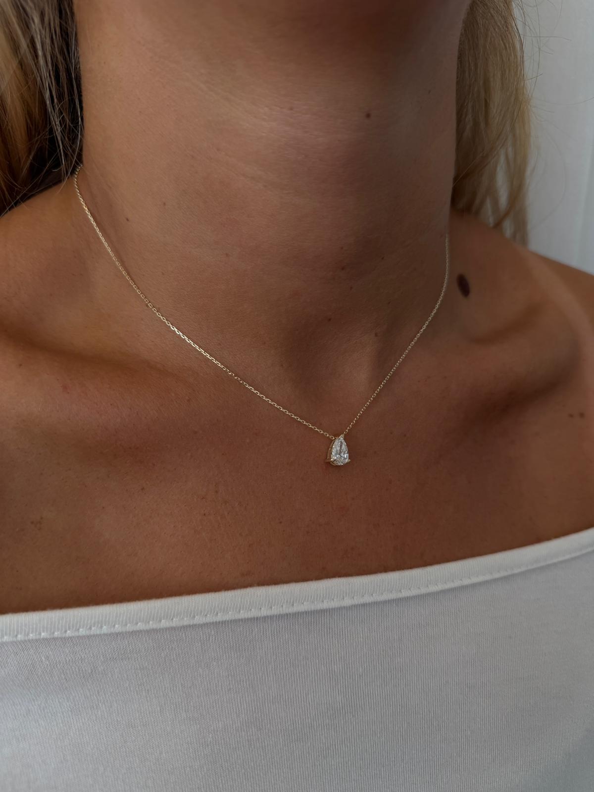 שרשרת סוליטר טיפה יהלום מעבדה 1.00 קראט