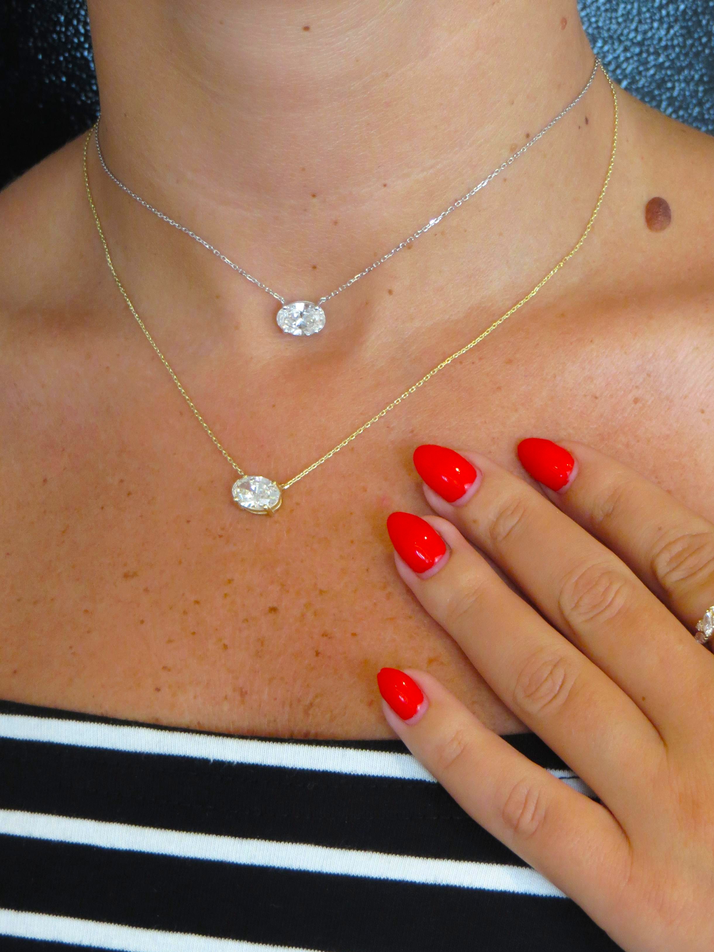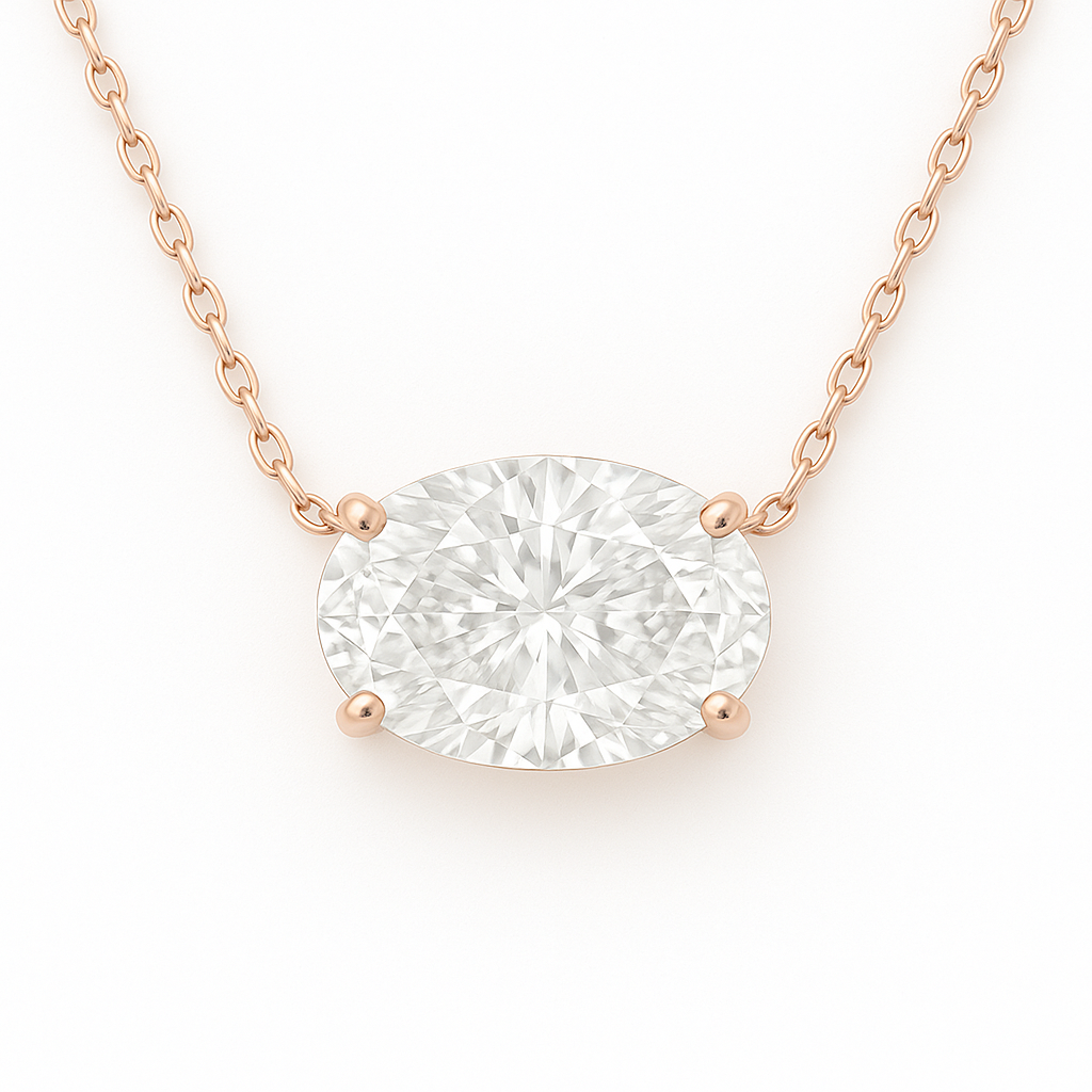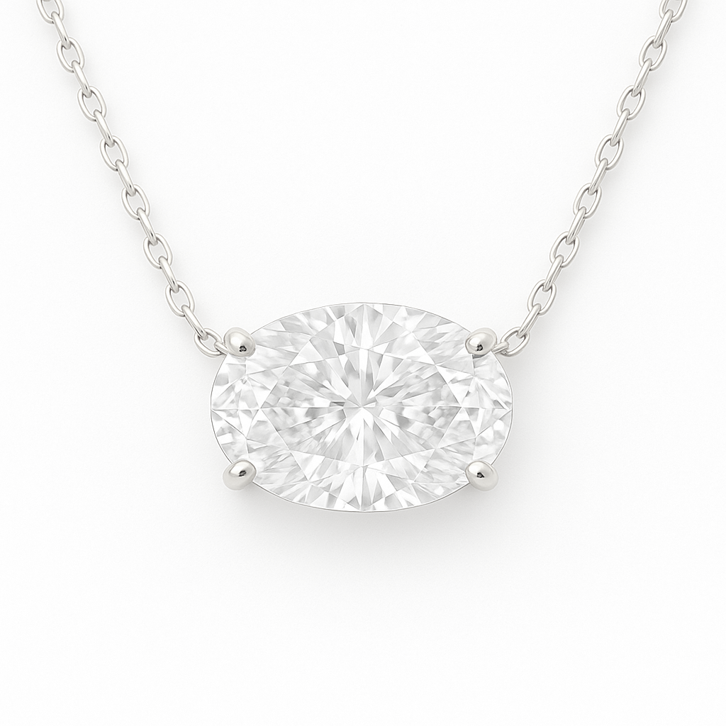 שרשרת סוליטר יהלום מעבדה – Side Oval