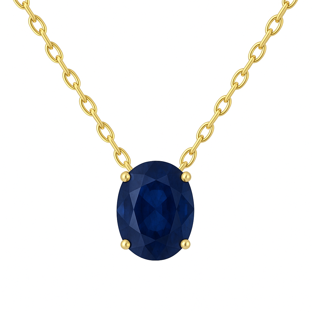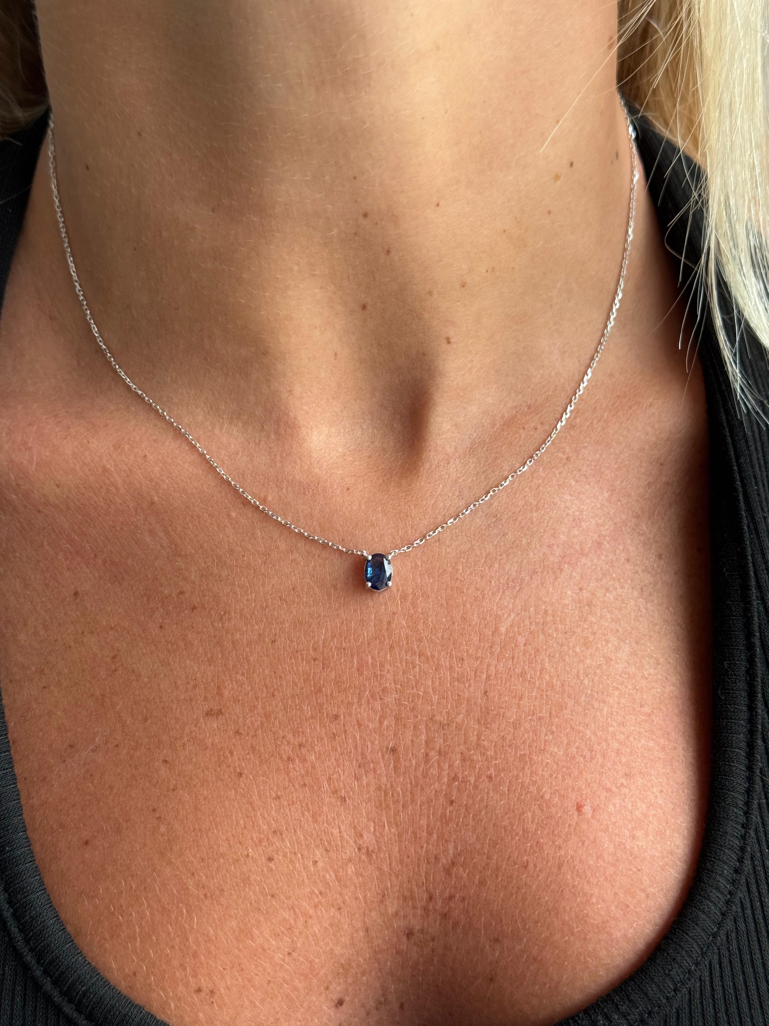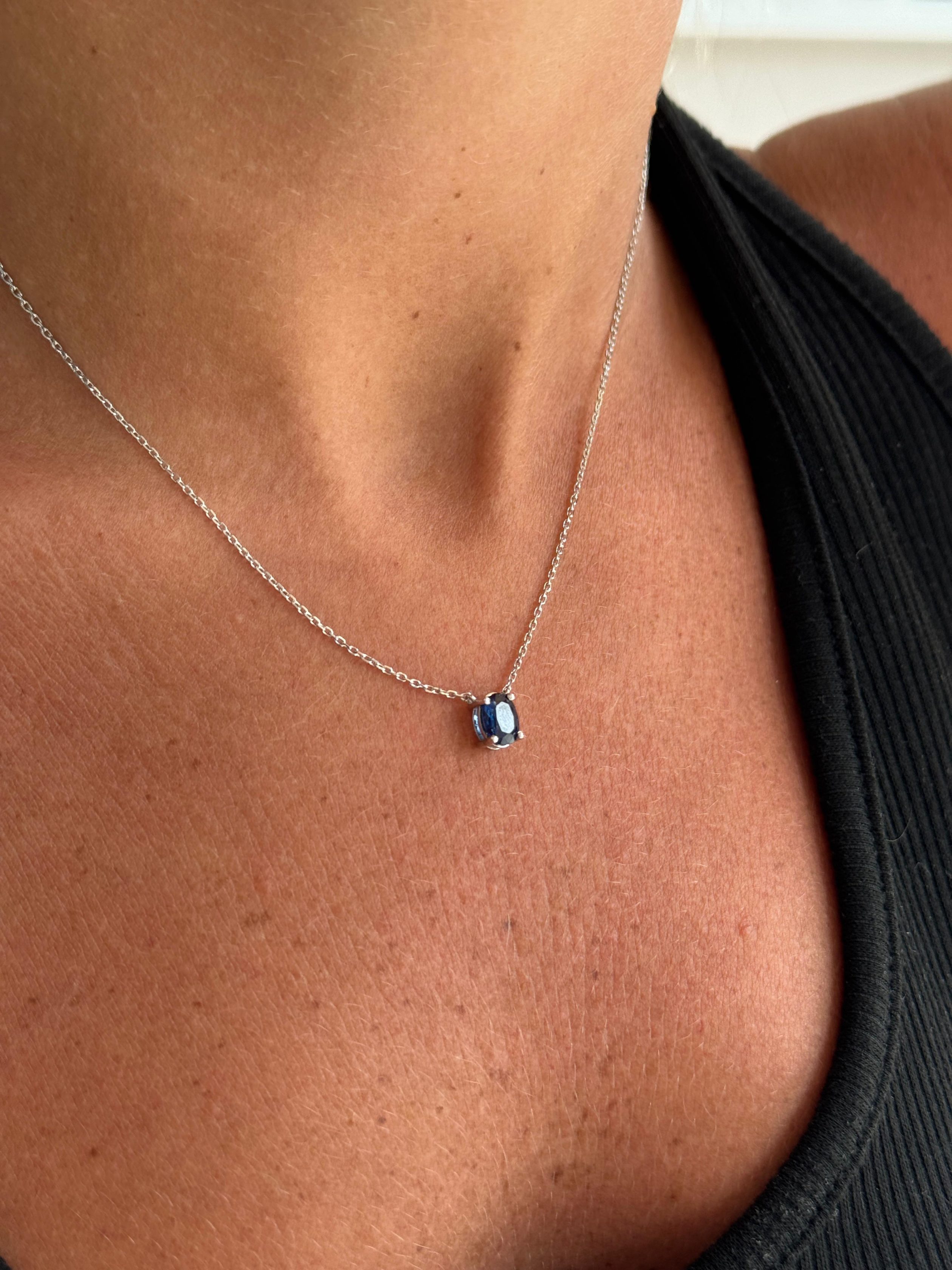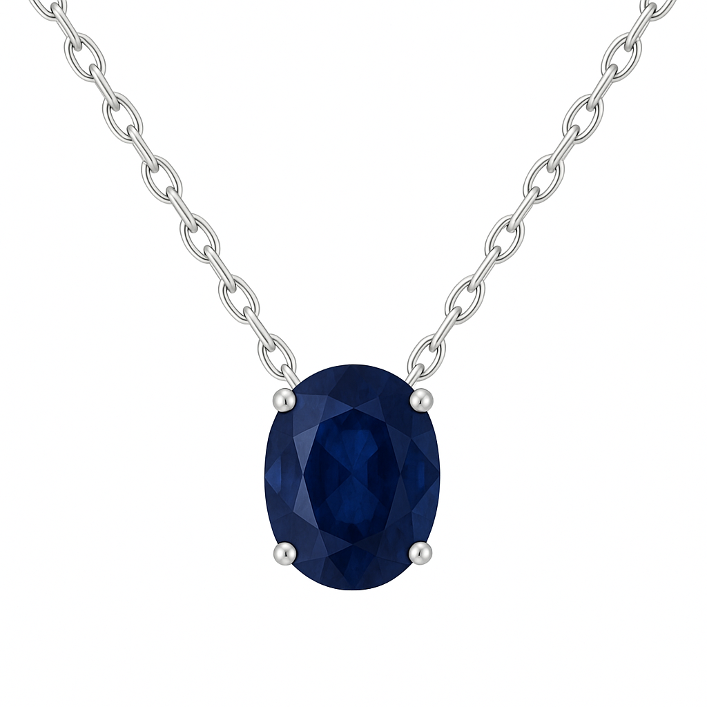 שרשרת סוליטר משובצת אבן ספיר טבעית בחיתוך Oval, ובמשקל 0.80 קראט.