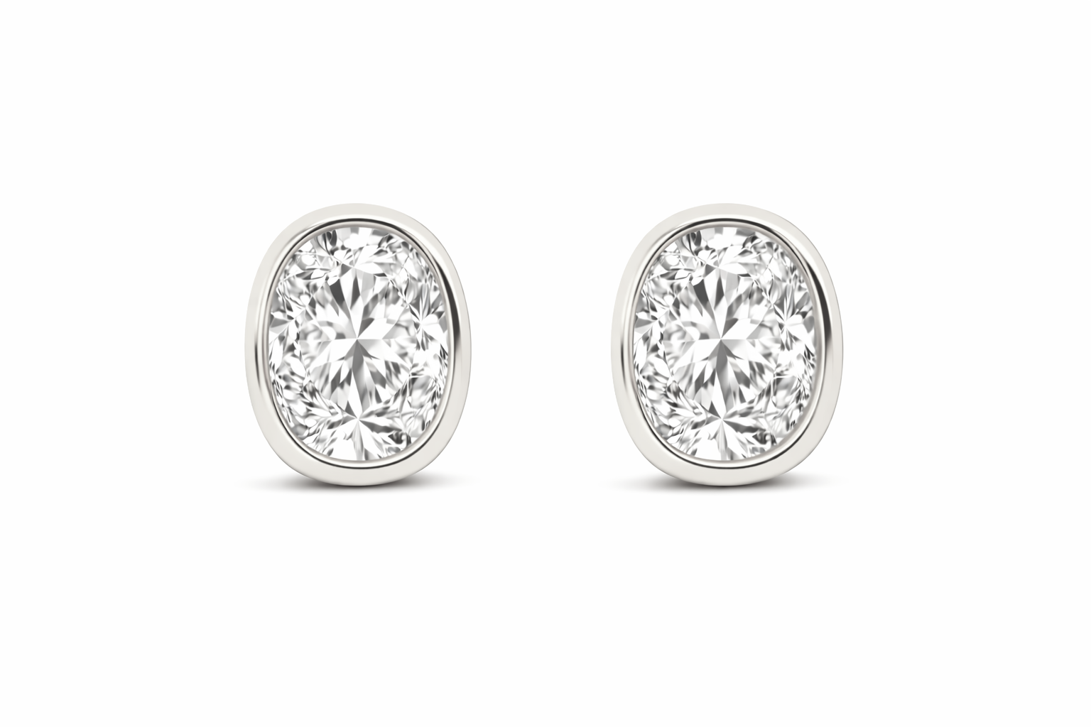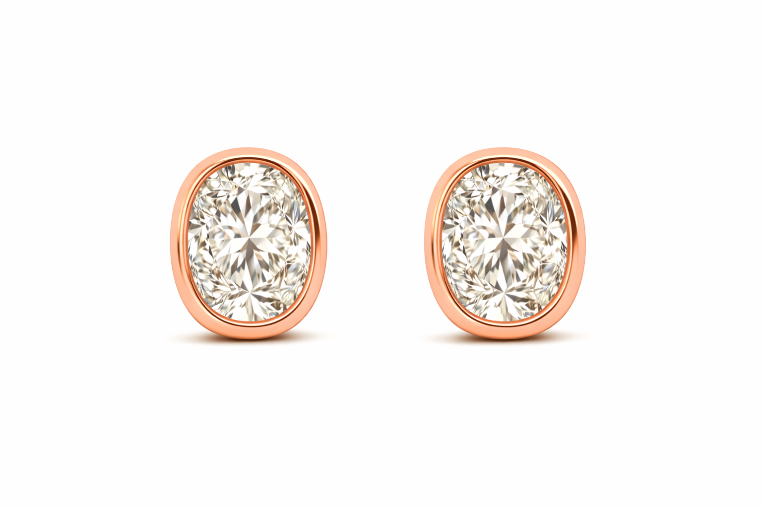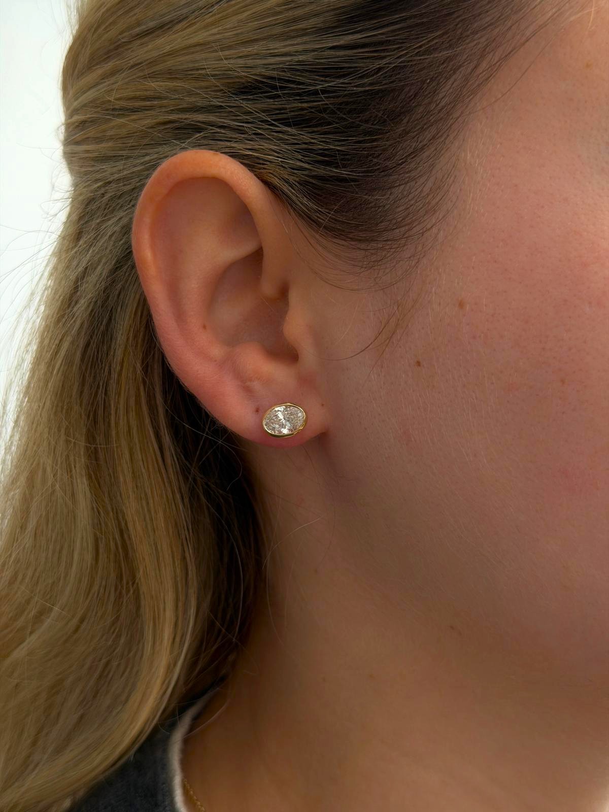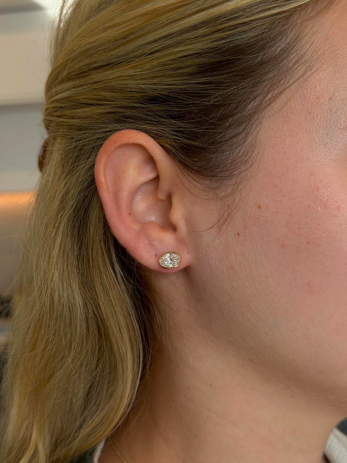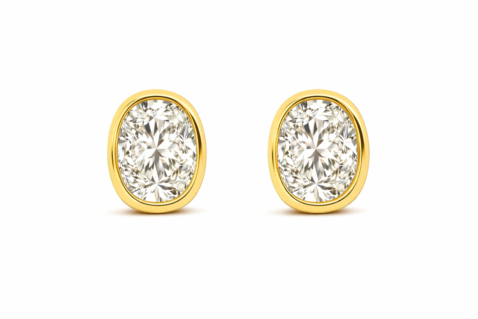 עגילי יהלום מעבדה אובל (Oval) בשיבוץ Bezel מזהב צהוב 14K