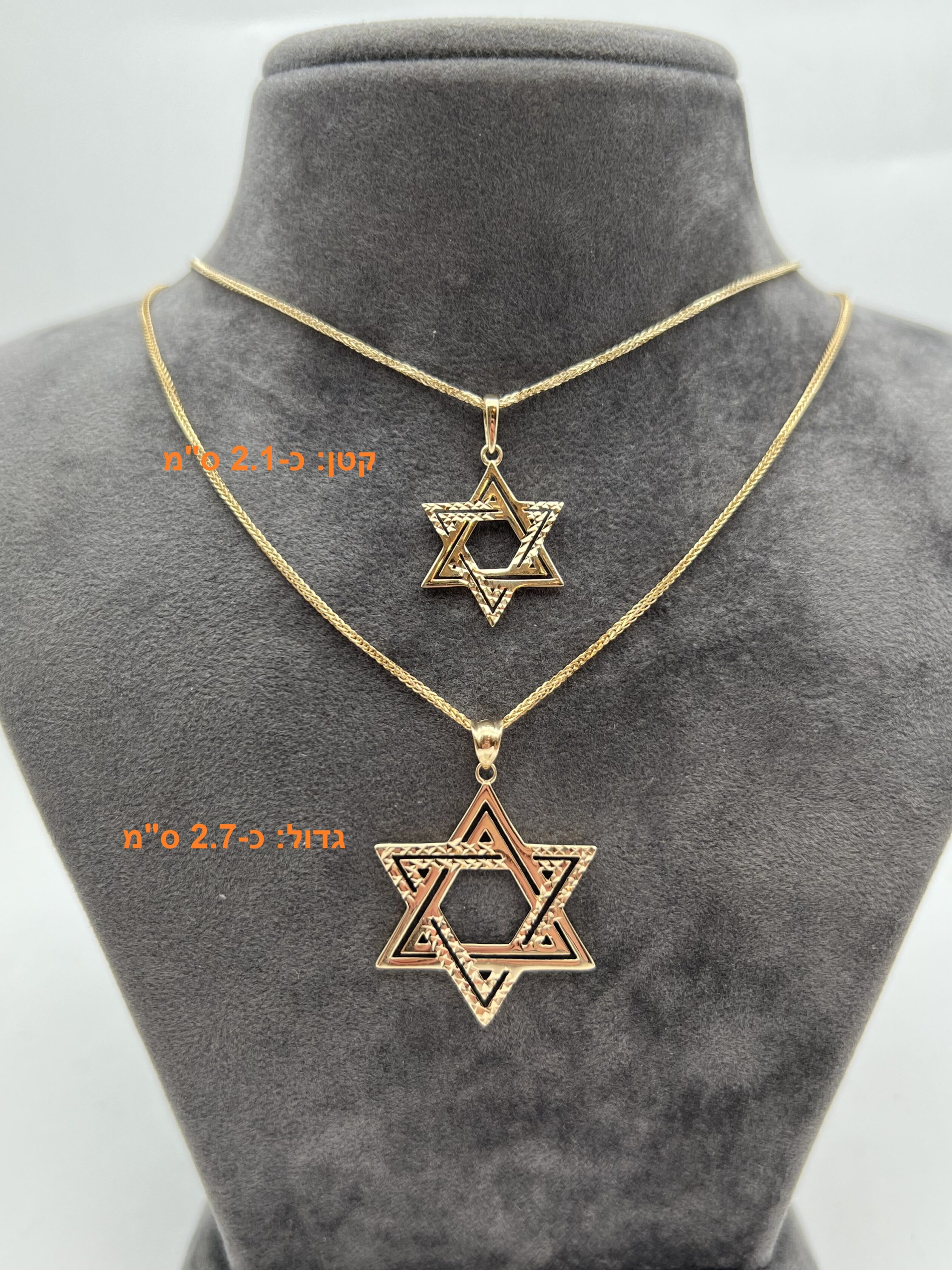 שרשרת מגן דוד מזהב אמיתי 14 קראט – תליון קלאסי ומשמעותי.
