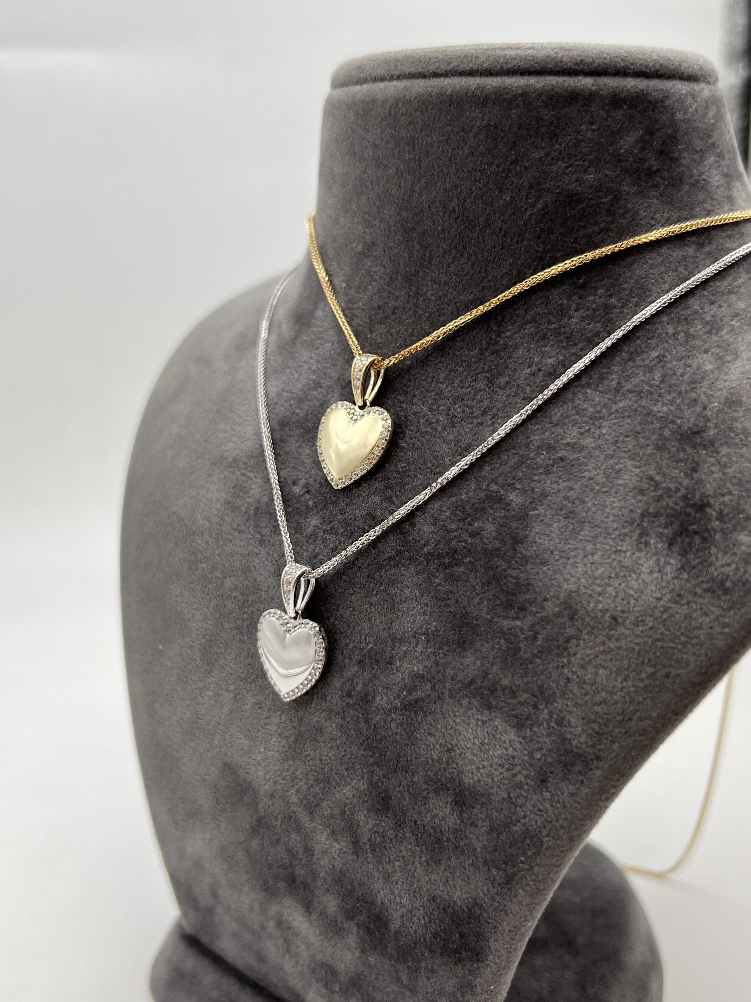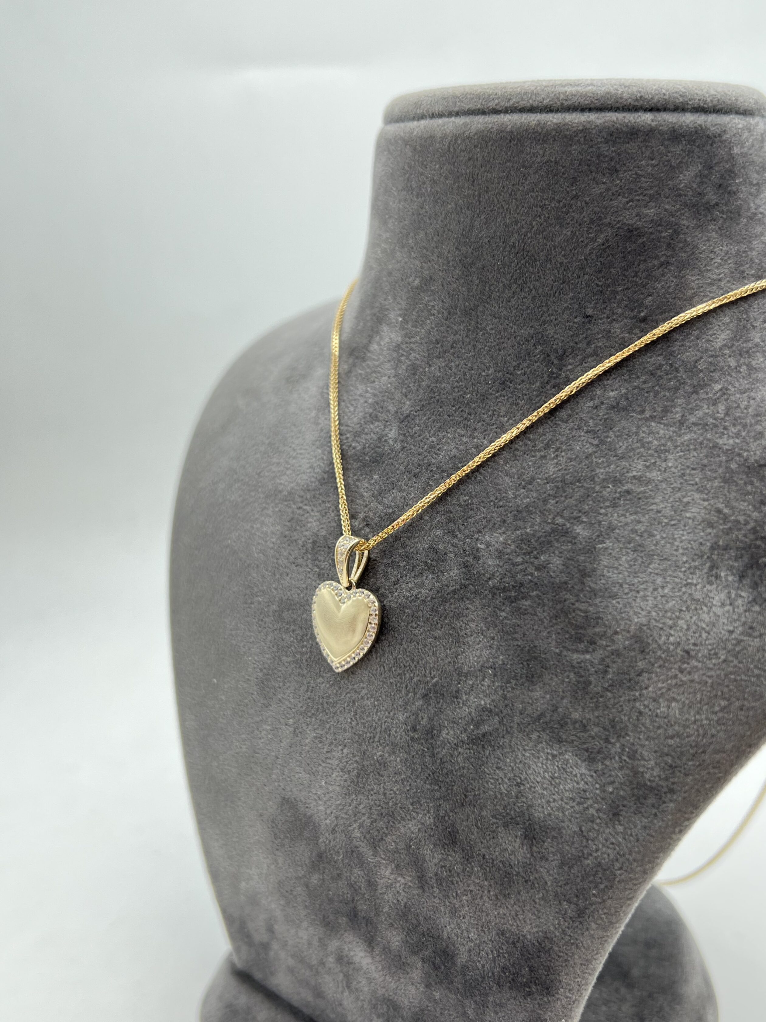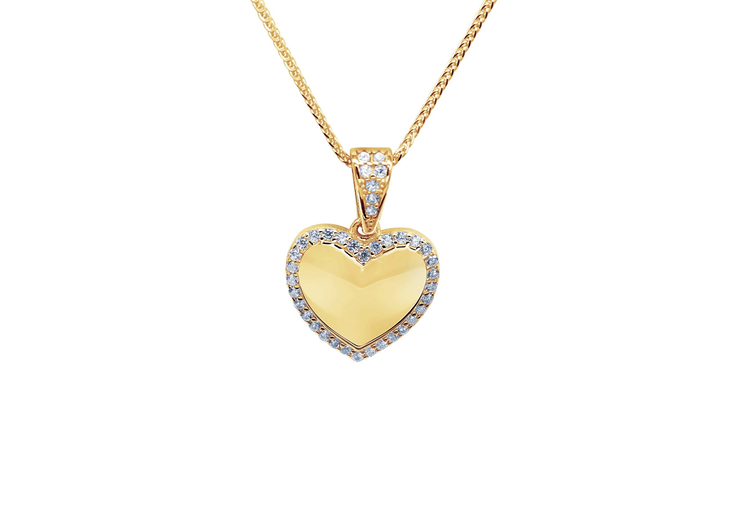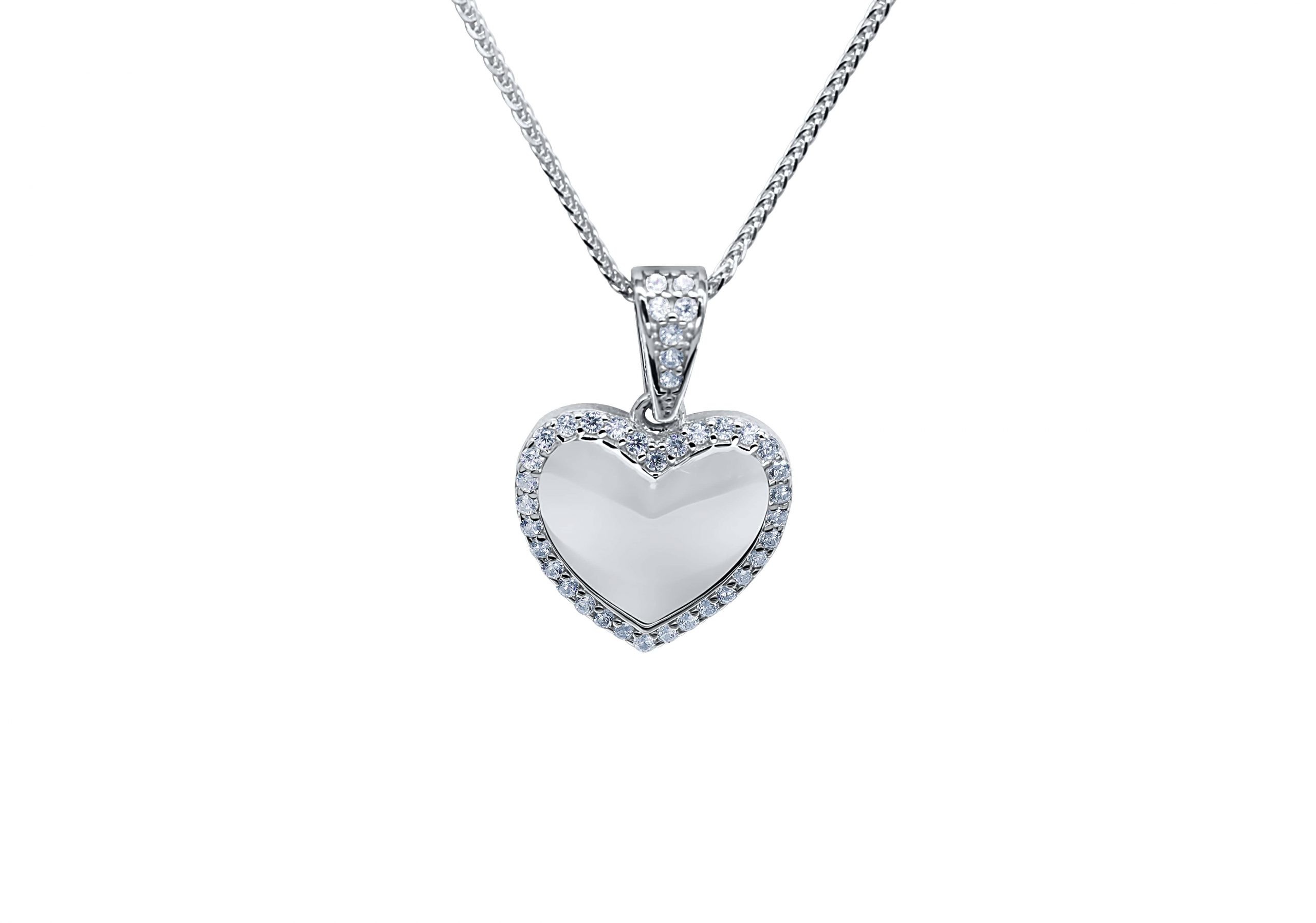 שרשרת ותליון בצורת לב, משובץ בזרקונים.