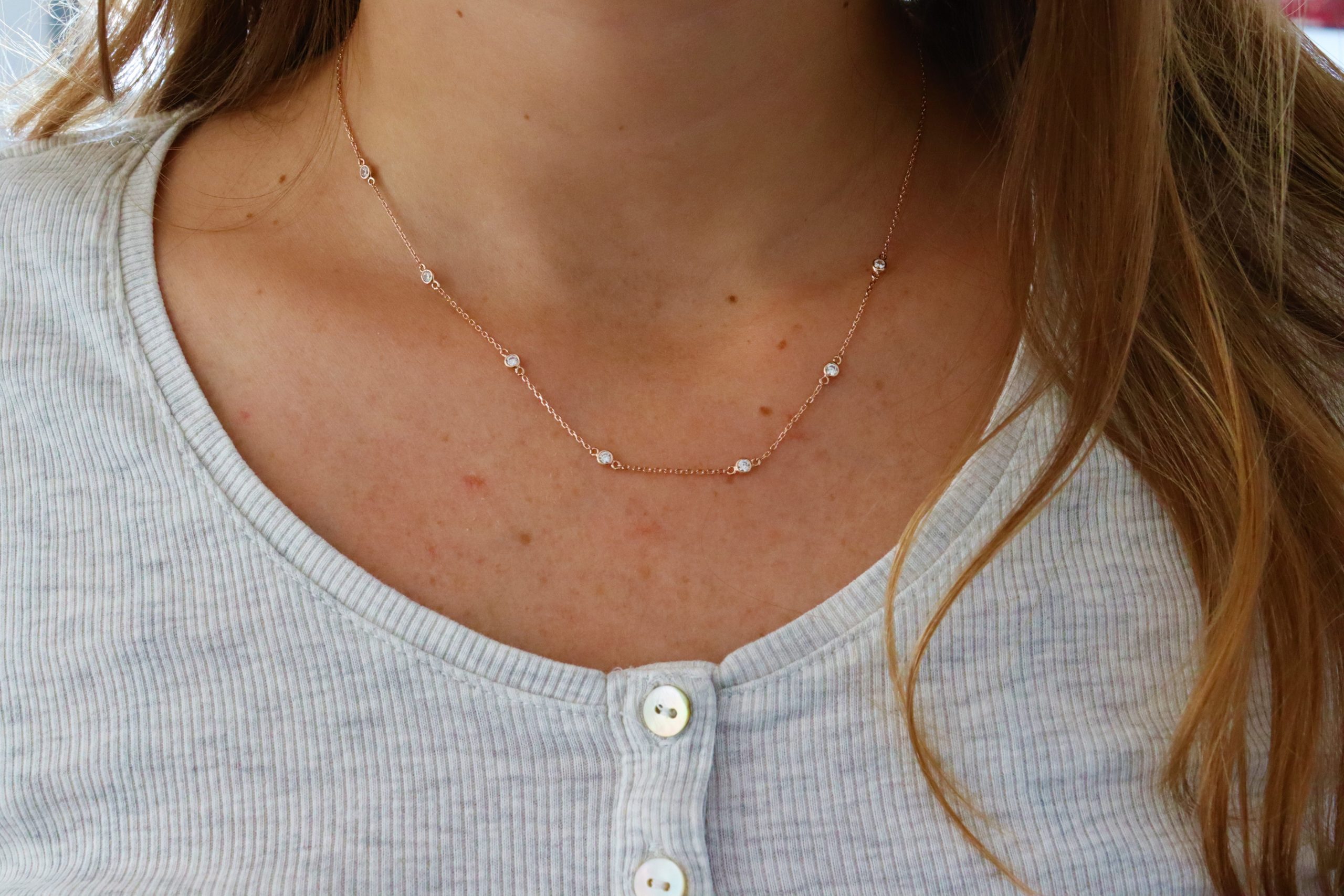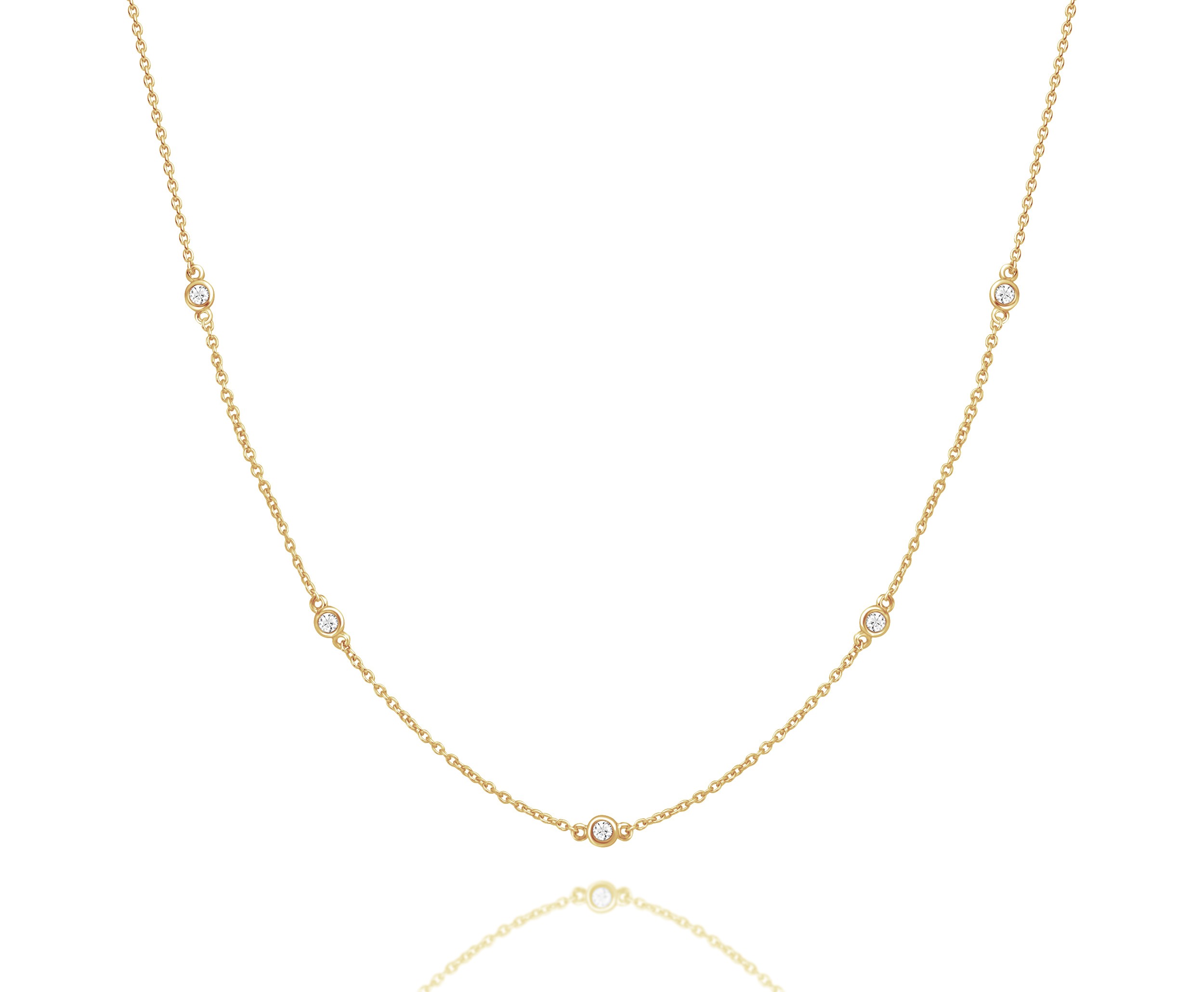 השרשרת משובצת חמישה זרקונים והיא זמינה בזהב צהוב או לבן – 14 קראט