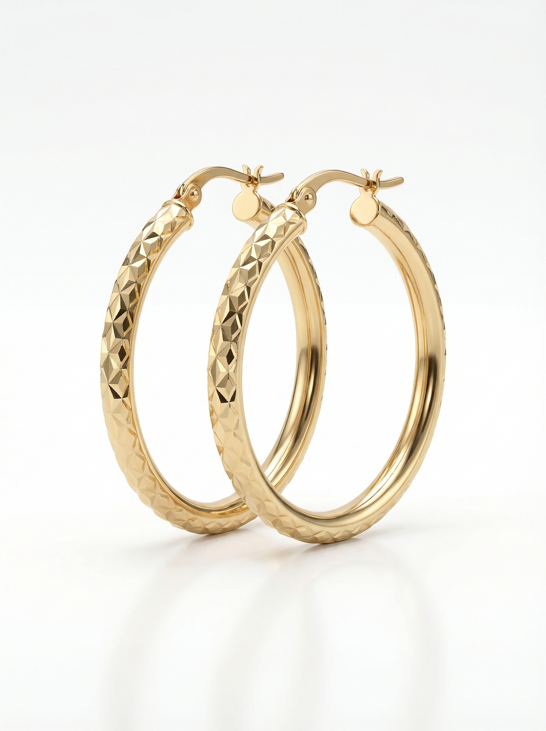 יש תכשיטים שנולדו להיות חלק מהיומיום – ועגילי החישוק בגימור Diamond Cut הם בדיוק כאלה. הניצוץ הייחודי שיוצרות חריטות הלייזר על הזהב הטהור מעניק להם נוכחות שקטה ומרשימה בו-זמנית. קלאסיקה שלא מתיישנת, בגרסה המודרנית ביותר שלה.