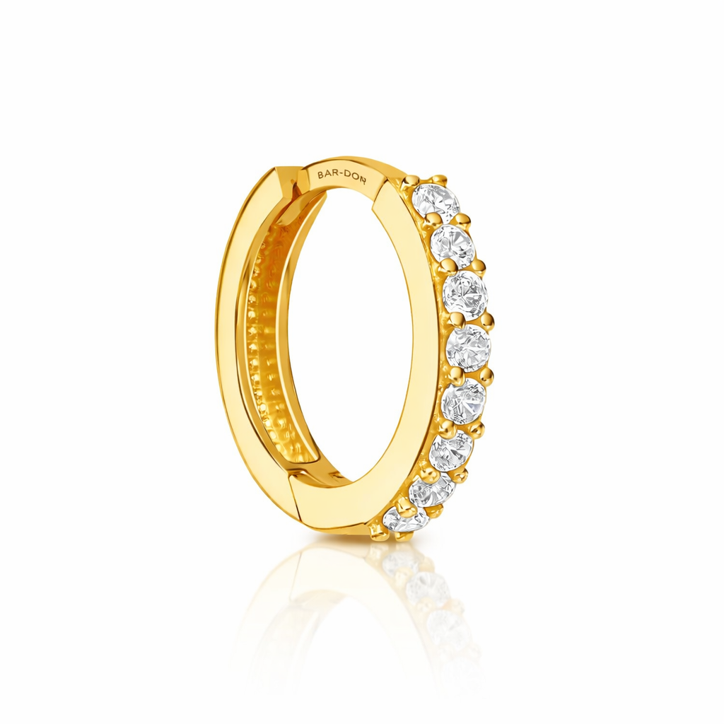 עגיל הג'יפסי הוא עגיל זהב לגבר שנולד מתוך הבנה שאלגנטיות אמיתית לא צועקת – היא מאירה. החישוק העדין מזהב 14 קראט, משובץ זרקונים מבריקים, ומביא ניצנוץ מדוד ומרוסן שמדבר אל מי שיודע.