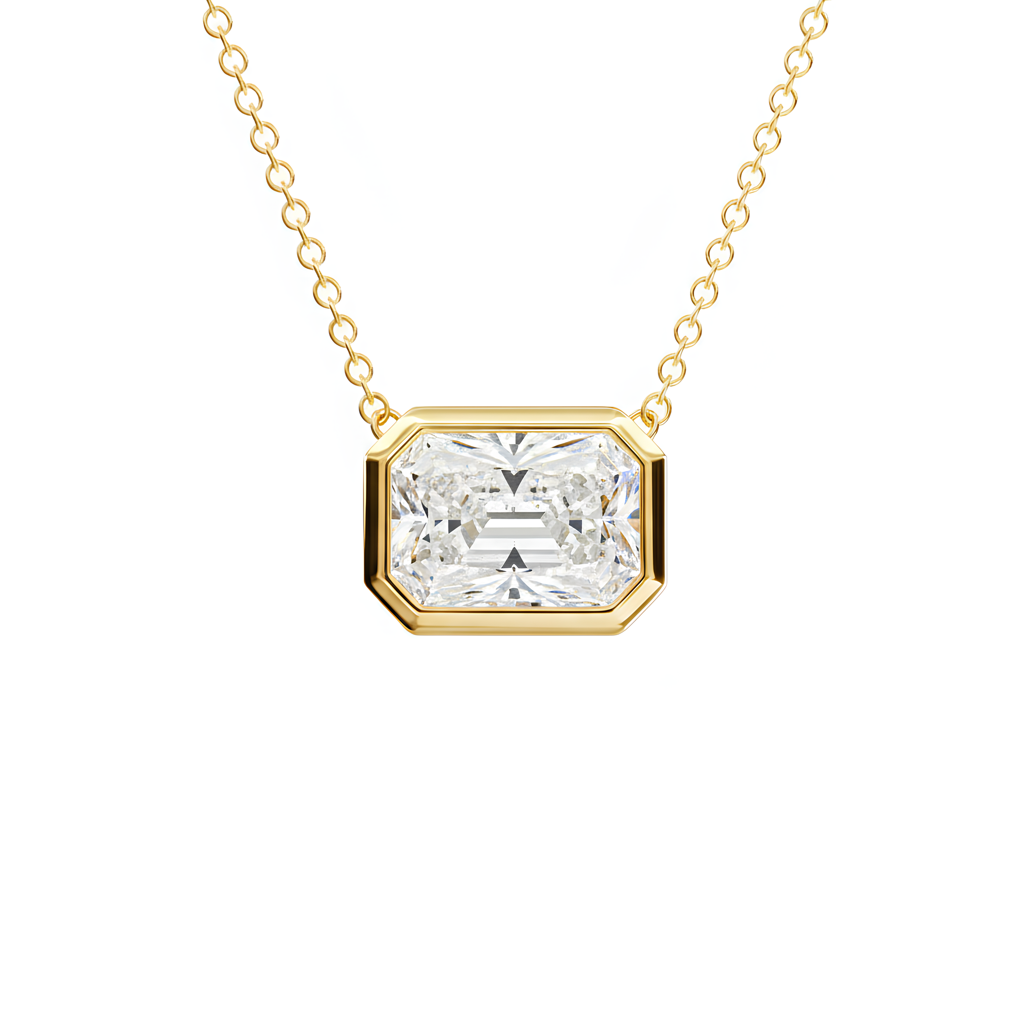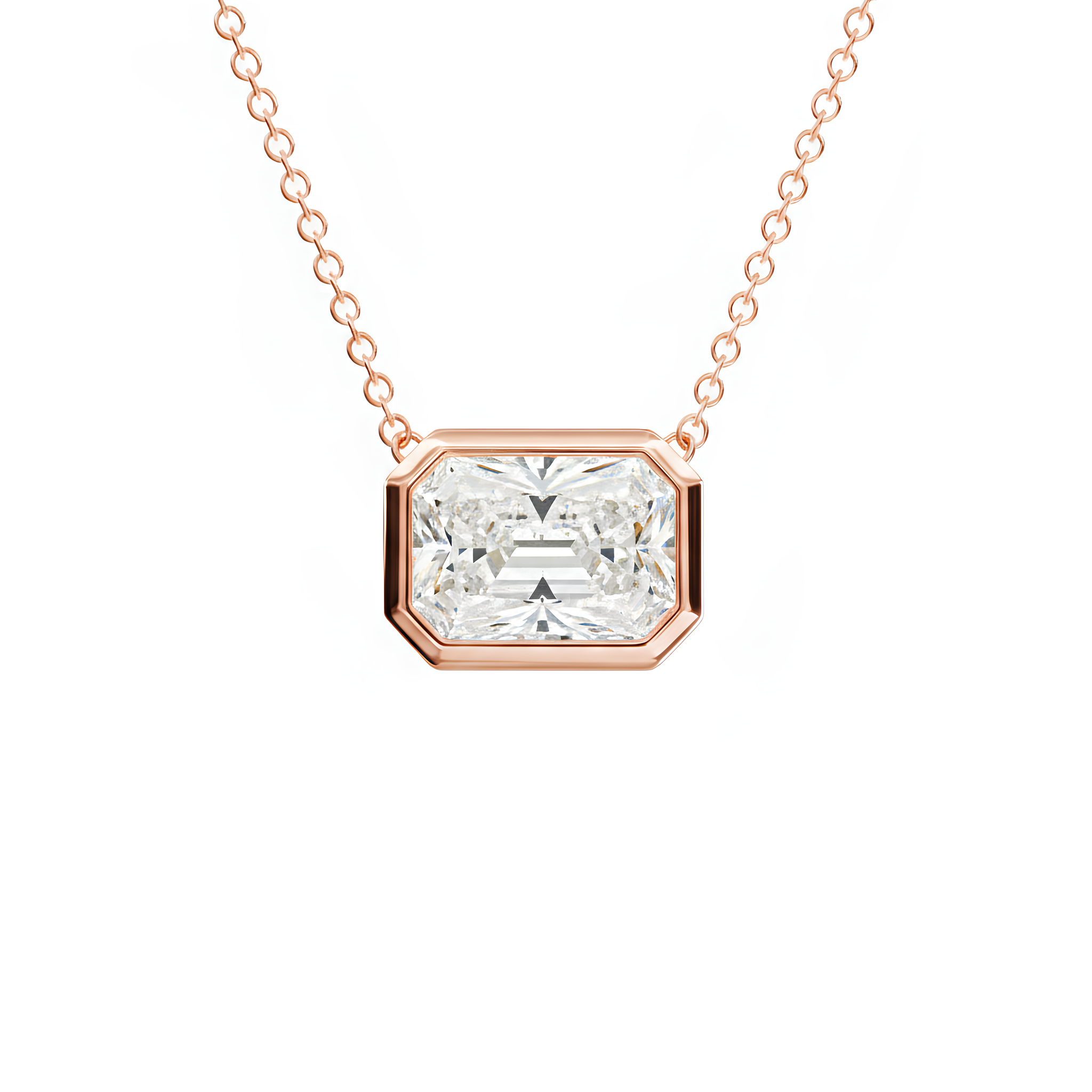 שרשרת סוליטר יהלום מעבדה בחיתוך Radiant | שיבוץ Bezel