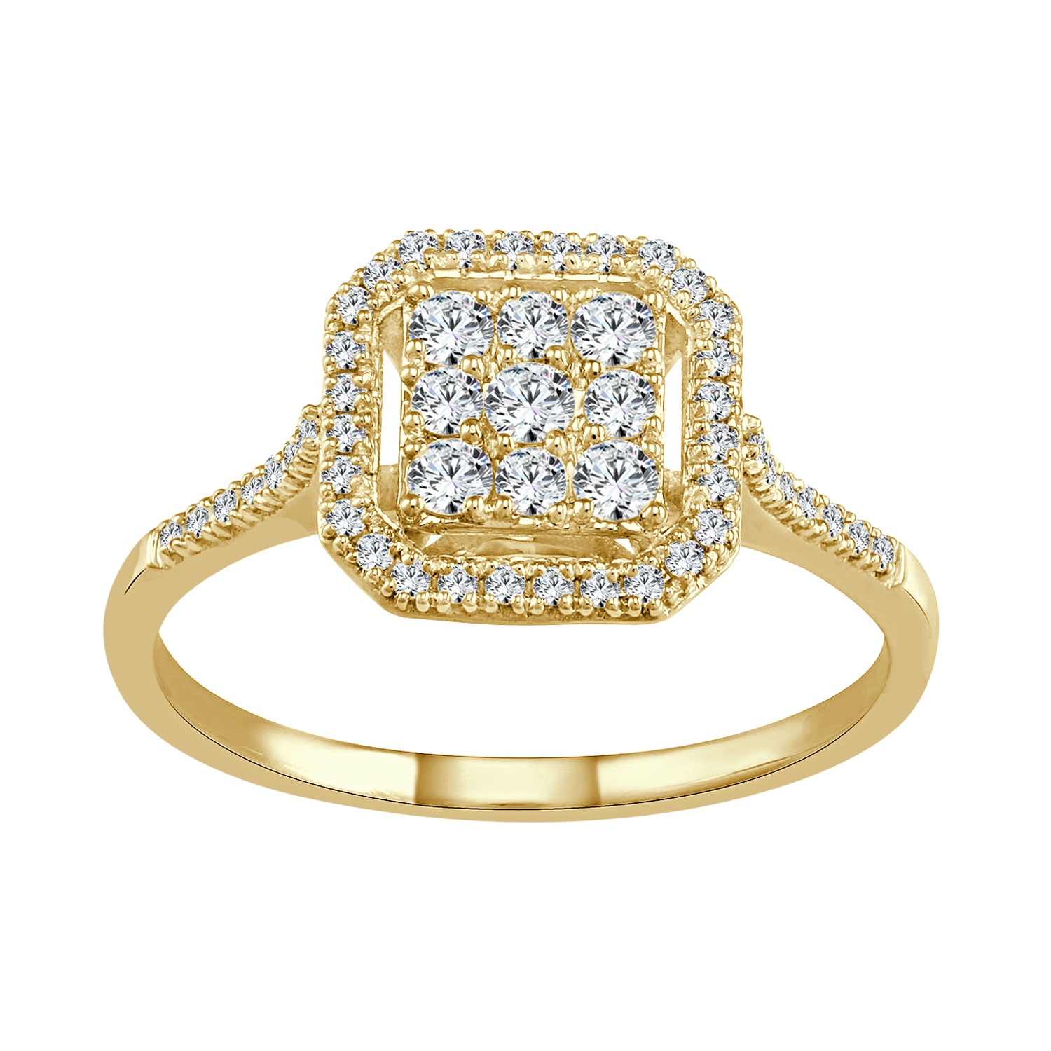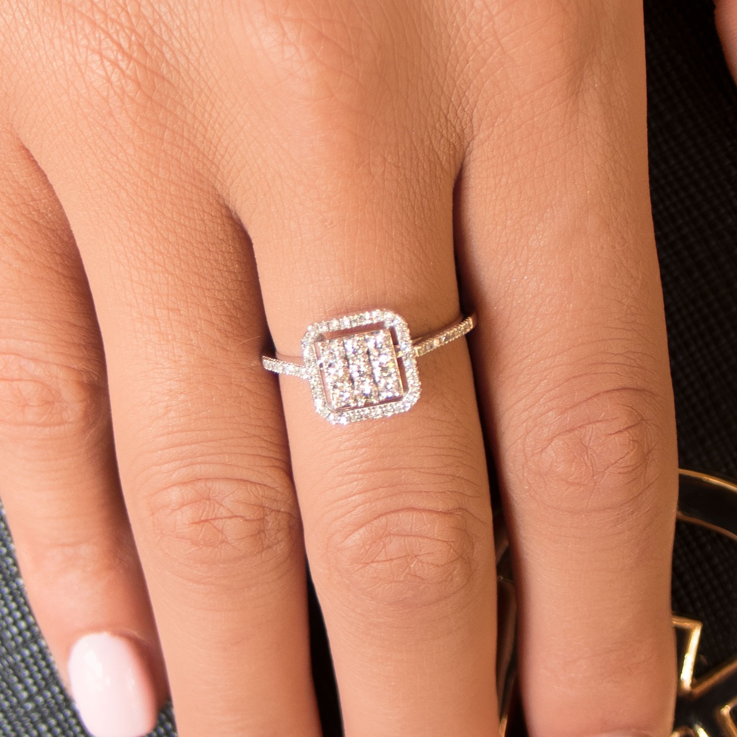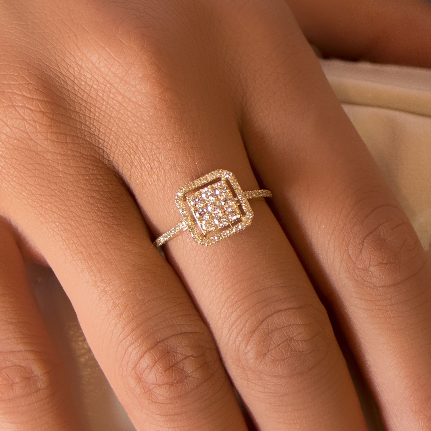 טבעת בצורת ריבוע משובצת ביהלומים טבעיים.